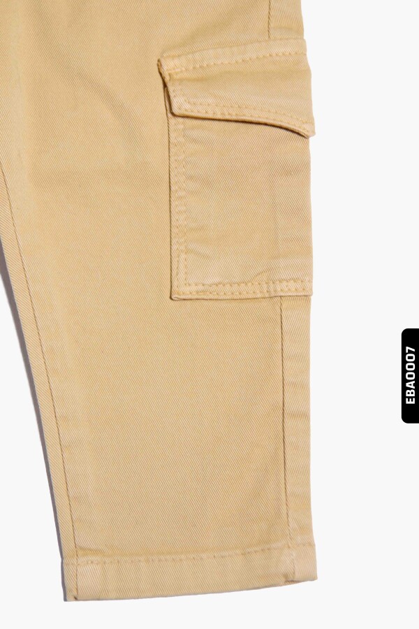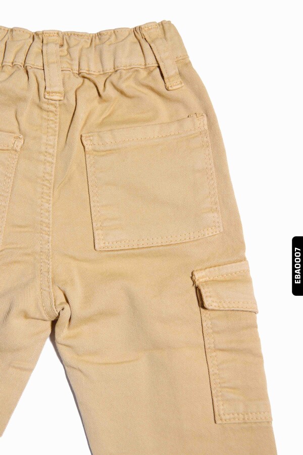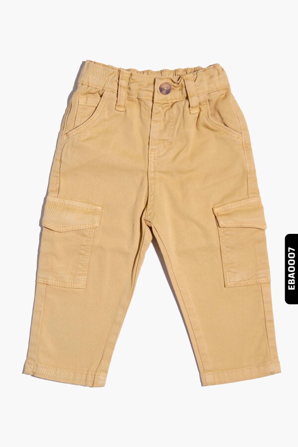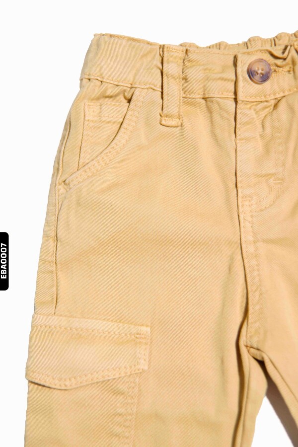 Bu bej renkli erkek çocuk pantolonu, rahat ve fonksiyonel tasarımıyla öne çıkar. Kış sezonu için ideal olan bu pantolon, kalın ve dayanıklı kumaştan üretilmiştir. Üst kısmında düğmeli ve lastikli bel detayı sayesinde kolayca giyilip çıkarılabilir. Yanlarda kapaklı cepler bulunur, böylece küçük eşyalar güvenle taşınabilir. Düz kesim ve klasik tasarımı ile günlük kullanımda hem şık hem de kullanışlıdır.