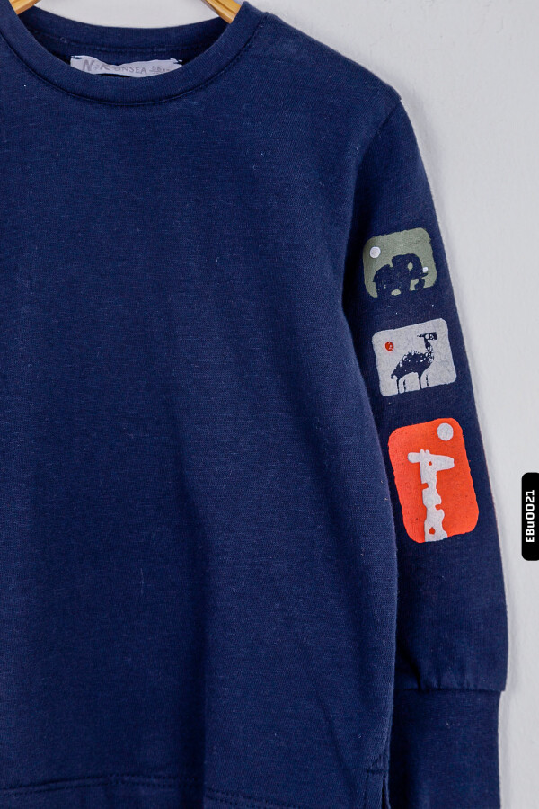 Gelince Haber VerBu erkek çocuk sweatshirtü, kış ayları için ideal sıcaklığı ve rahatlığı sunar. Lacivert renkte tasarlanan ürün, kapüşonsuz ve fermuarsızdır. Bisiklet yaka yapısı sayesinde kolay giyilip çıkarılabilir. Uzun kollu modeli, kışın sıcak tutarken kol kısmında bulunan sevimli hayvan figürlü baskılar ile çocukların ilgisini çeker. Yanlarda cepli olmamakla birlikte, alt kısmında hafif yırtmaçlar bulunur. Spor ve günlük kullanıma uygun sade tasarımı ile her kombinle rahatlıkla uyum sağlar.