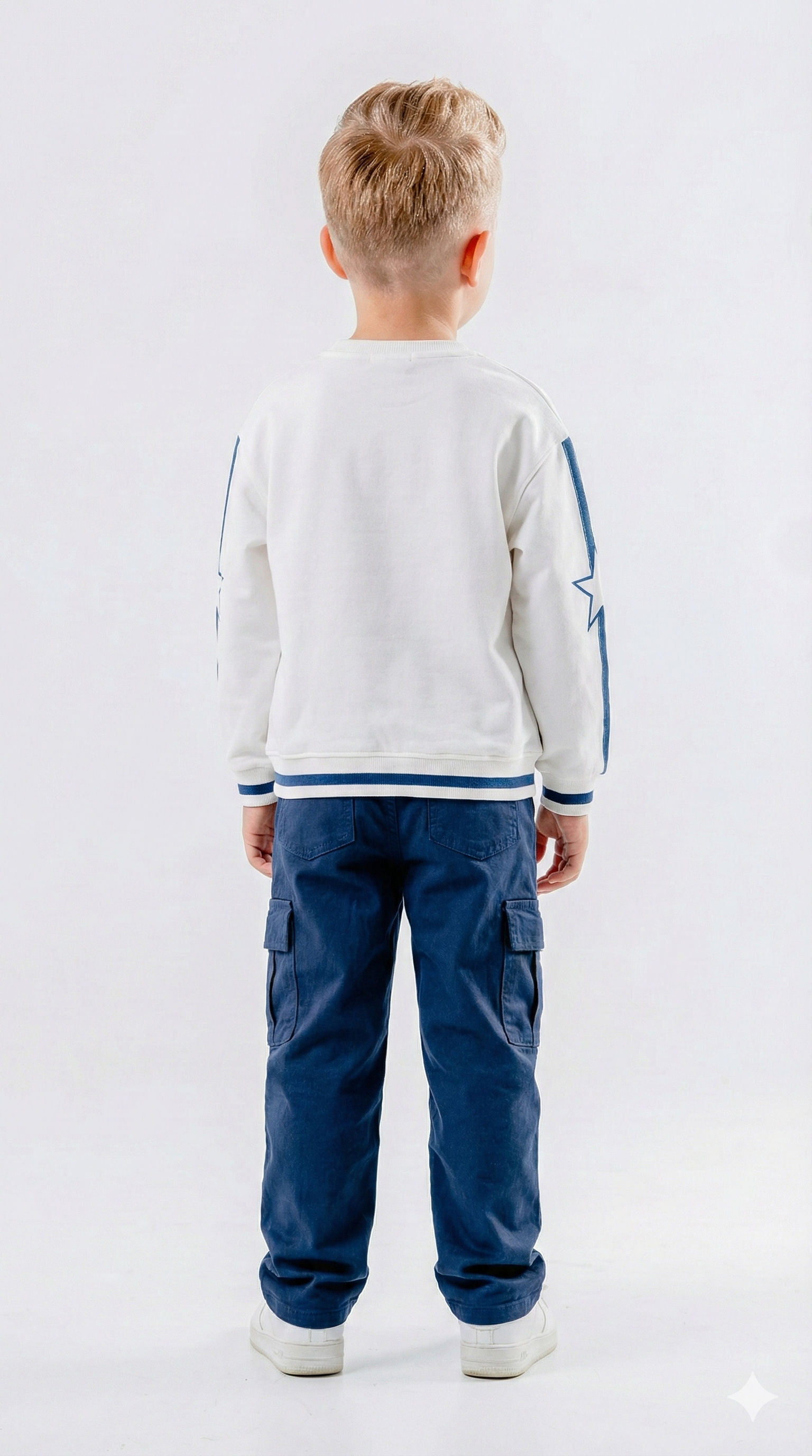 Gelince Haber VerBu erkek çocuk kombin takımı, rahat ve şık bir görünüm sunar. Takımda uzun kollu, kapüşonlu üst bulunmakta olup, ön kısmında fermuar kapama yer almaktadır. Kordon detayları ile bel kısmı ayarlanabilir. Üst ve alt parçalar ceplidir. Kumaş yapısı yumuşak ve hafif dokuludur, günlük kullanım için uygundur. Spor ve casual tarzı bir kombin olarak öne çıkar.
