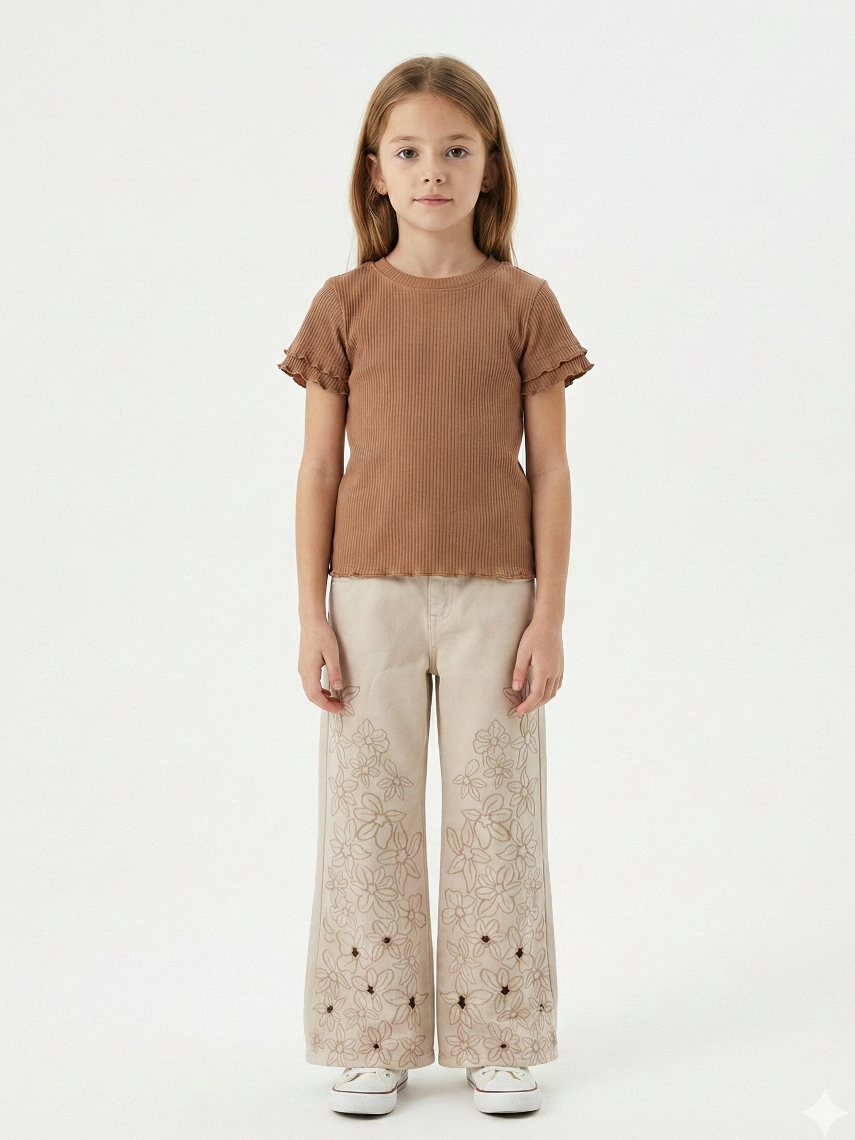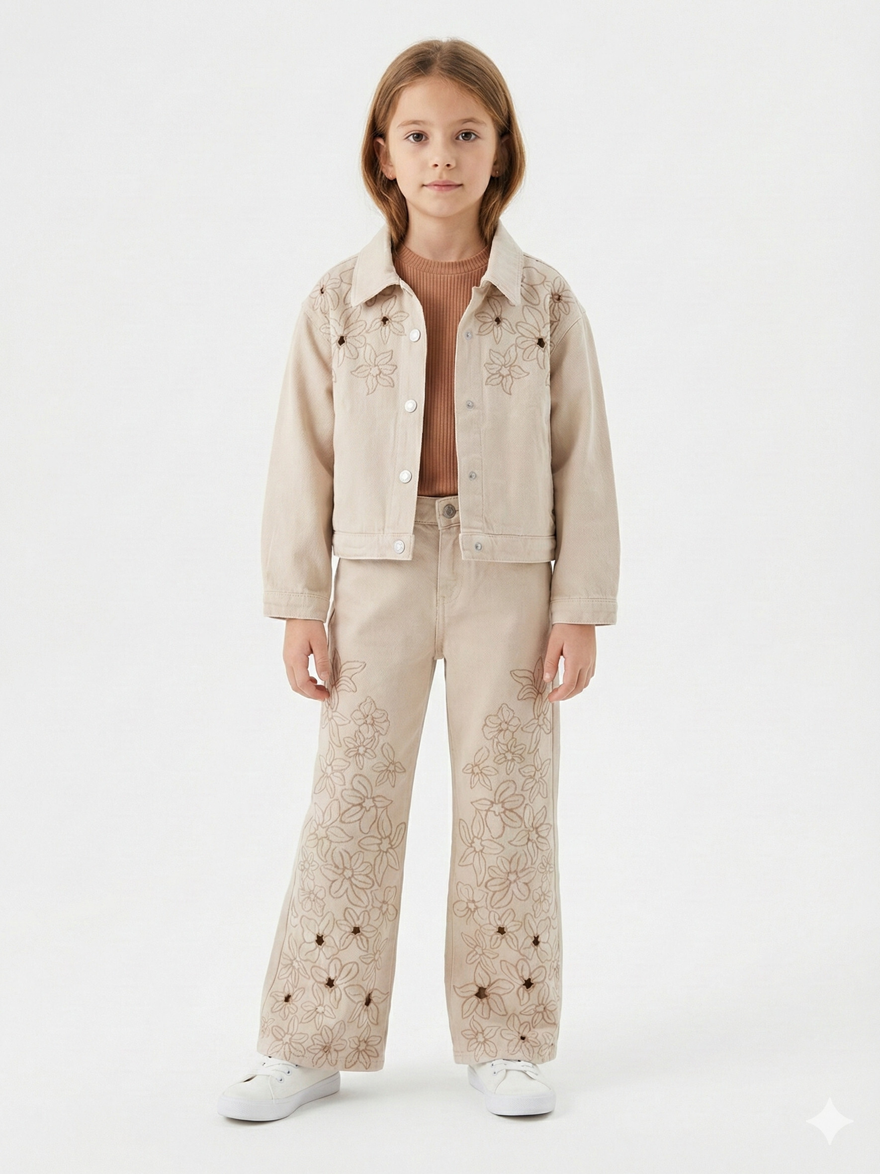 Bu kız çocuk kombin takımı, günlük ve rahat kullanım için idealdir. Takım, kısa kollu tişört ve diz hizasında etekten oluşur. Tişört bisiklet yaka ve düz renklidir, eteğin önü ise renkli çizgili desenlerle hareketlendirilmiştir. Kumaş hafif ve nefes alabilir yapıda, yaz ayları için uygundur. Spor ve şık bir görünüm sunar.