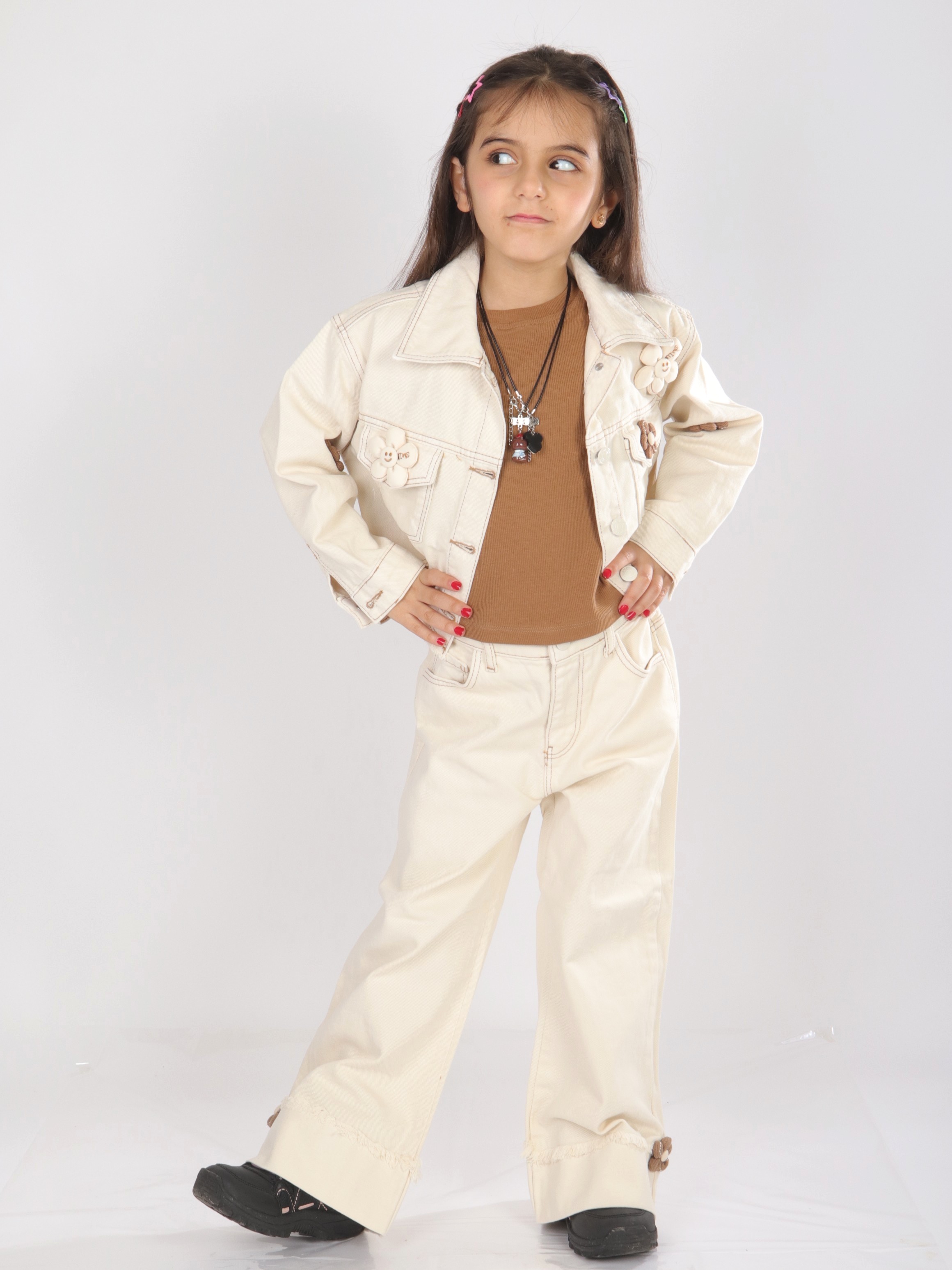 Bu kız çocuk kombin takımı, rahat ve şık bir günlük kullanım için uygundur. Takım, uzun kollu ve kapüşonlu üst parça ile birlikte eşleşen alt parçadan oluşur. Fermuarlı kapama sayesinde kolay giyilip çıkarılabilir. Cepleri ve kordon detayları pratik ve fonksiyoneldir. Bisiklet yaka ve oversize kesim, modern ve spor bir görünüm sunar. Kumaş dokusu yumuşak ve hafif olup, çizgili ve baskılı desenler ile hareketlendirilmiştir.