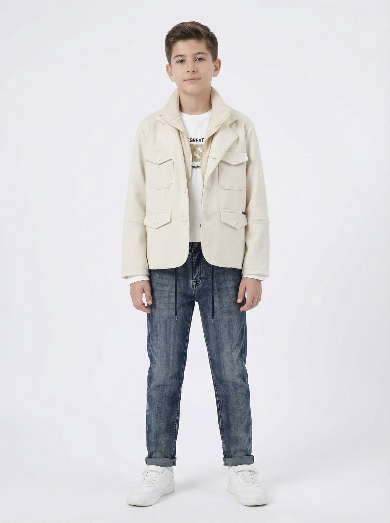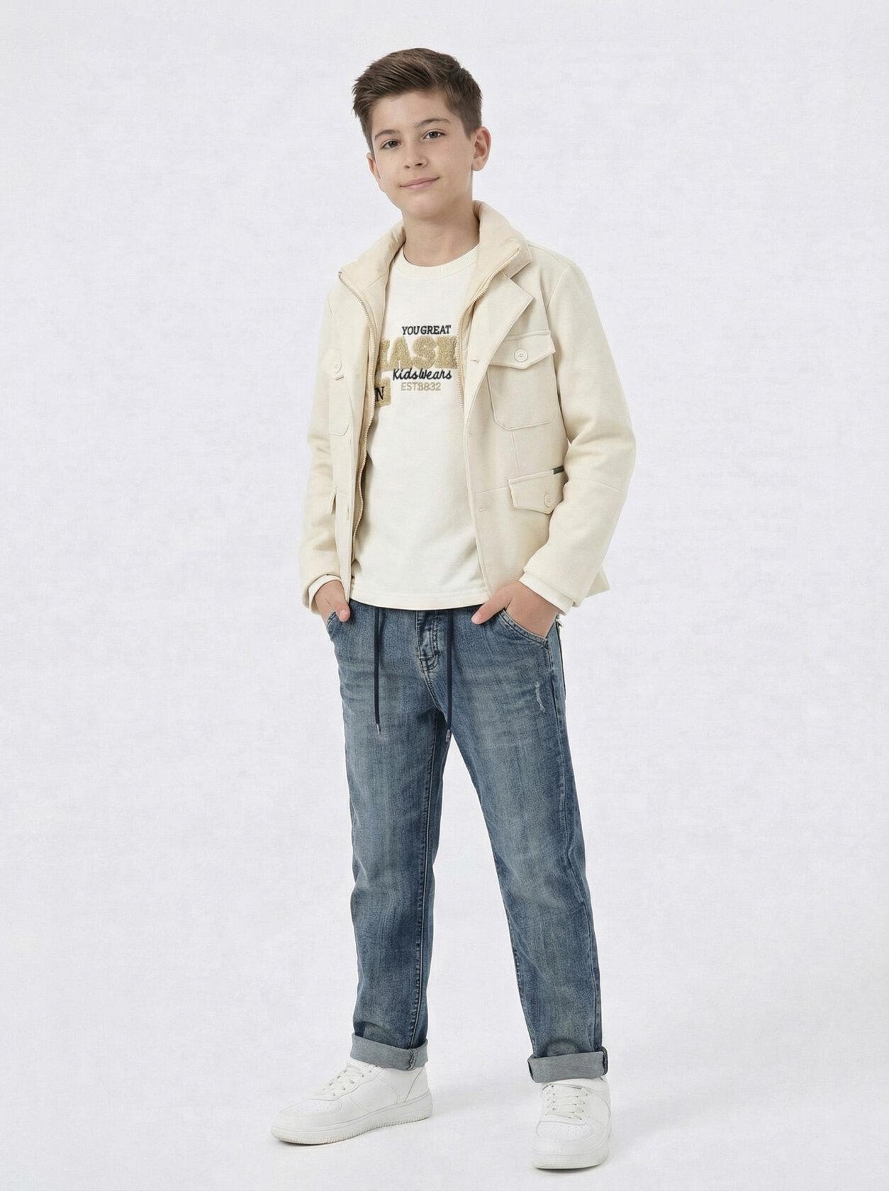 Erkek Çocuk 3'lü Alt Üst Takım 11-14 Yaş 14205 Ekru - Mavi