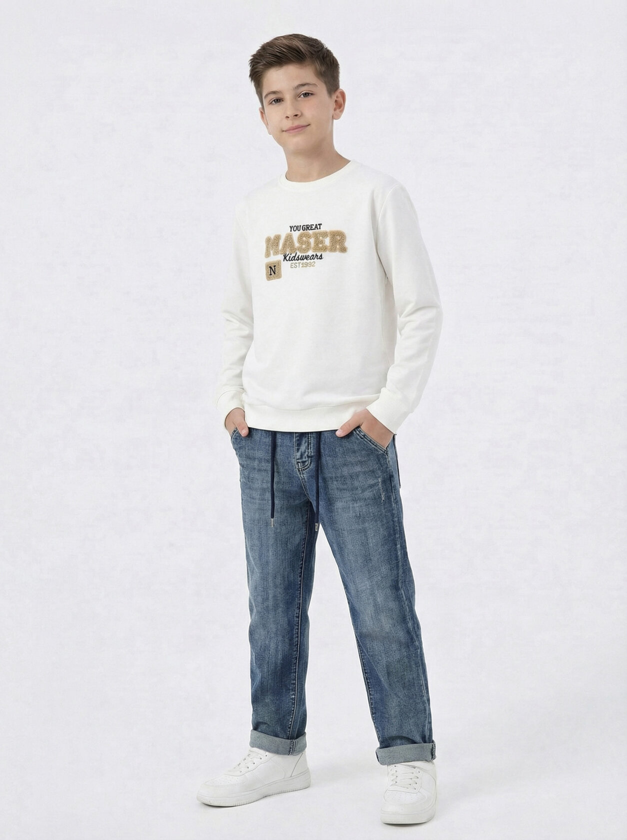 Erkek Çocuk 3'lü Alt Üst Takım 11-14 Yaş 14205 Ekru - Mavi - 4