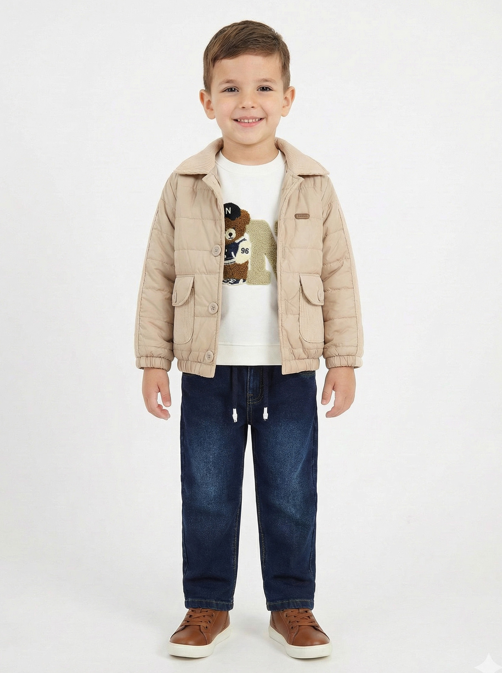Erkek Çocuk 3'lü Alt Üst Takım 2-5 Yaş 12212 Bej - Mavi - 5
