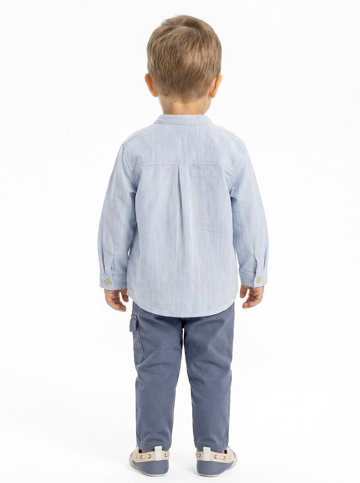 - Uzun kollu, düğmeli ve sıfır yaka gömlek konfor sunar.