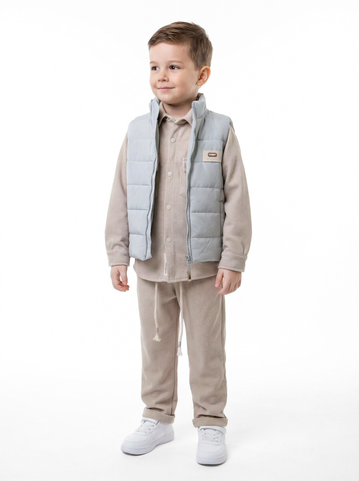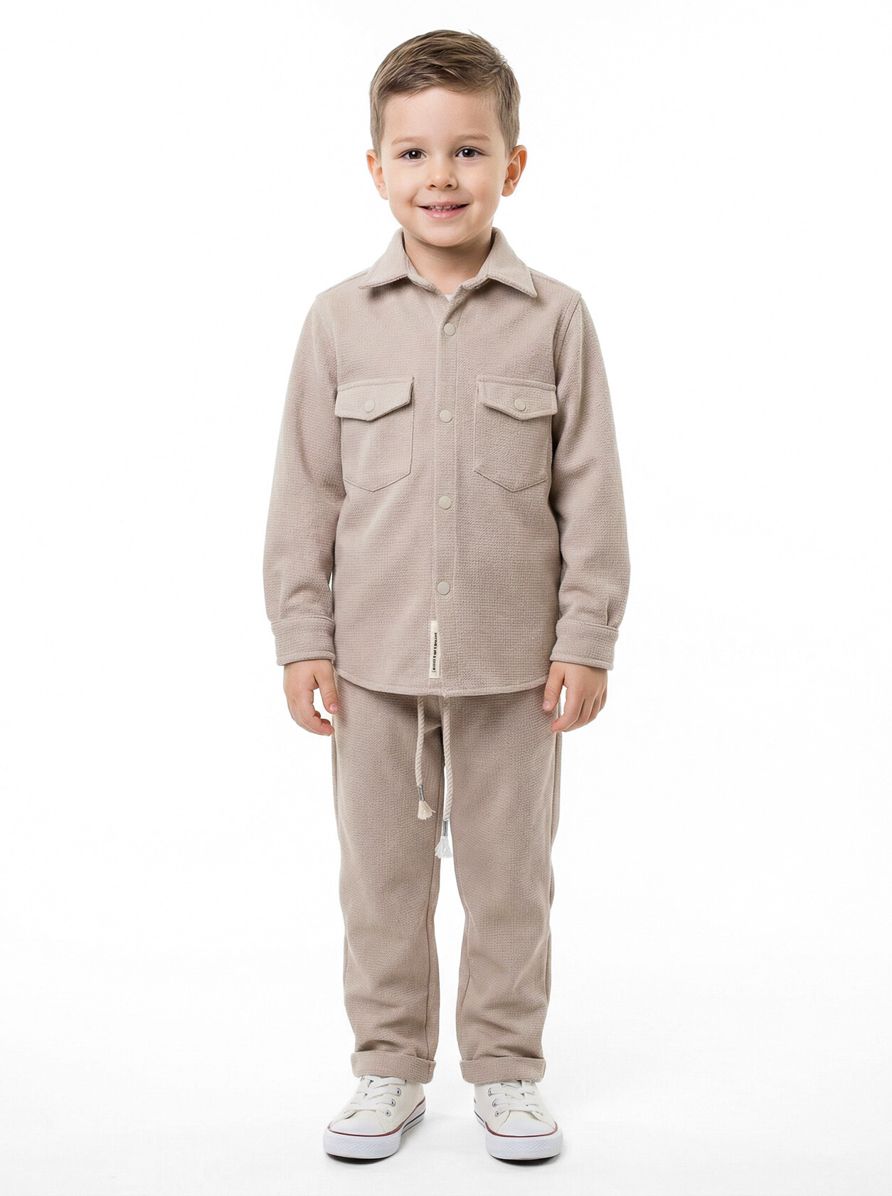 Çocuklar için tasarlanmış bu şık ve konforlu alt üst takımı, bahar sezonunda mükemmel bir seçimdir. Bej ve mavi renk seçenekleriyle sunulan bu takım, hem rahat hem de stil sahibi bir görünüm sunar.