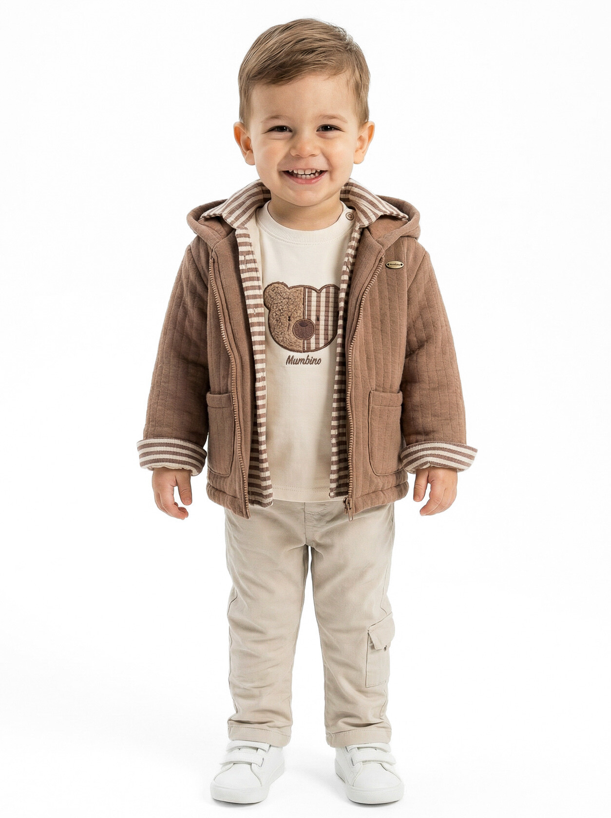 Çocuklarınız için mükemmel bir bahar kombinasyonu! Bu şirin erkek çocuk alt üst takımı, rahatlık ve şıklığı bir araya getiriyor. Kapüşonlu üst kısmı, soğuk havalarda ekstra koruma sağlarken, fermuarlı tasarımı pratik bir kullanım sunar.