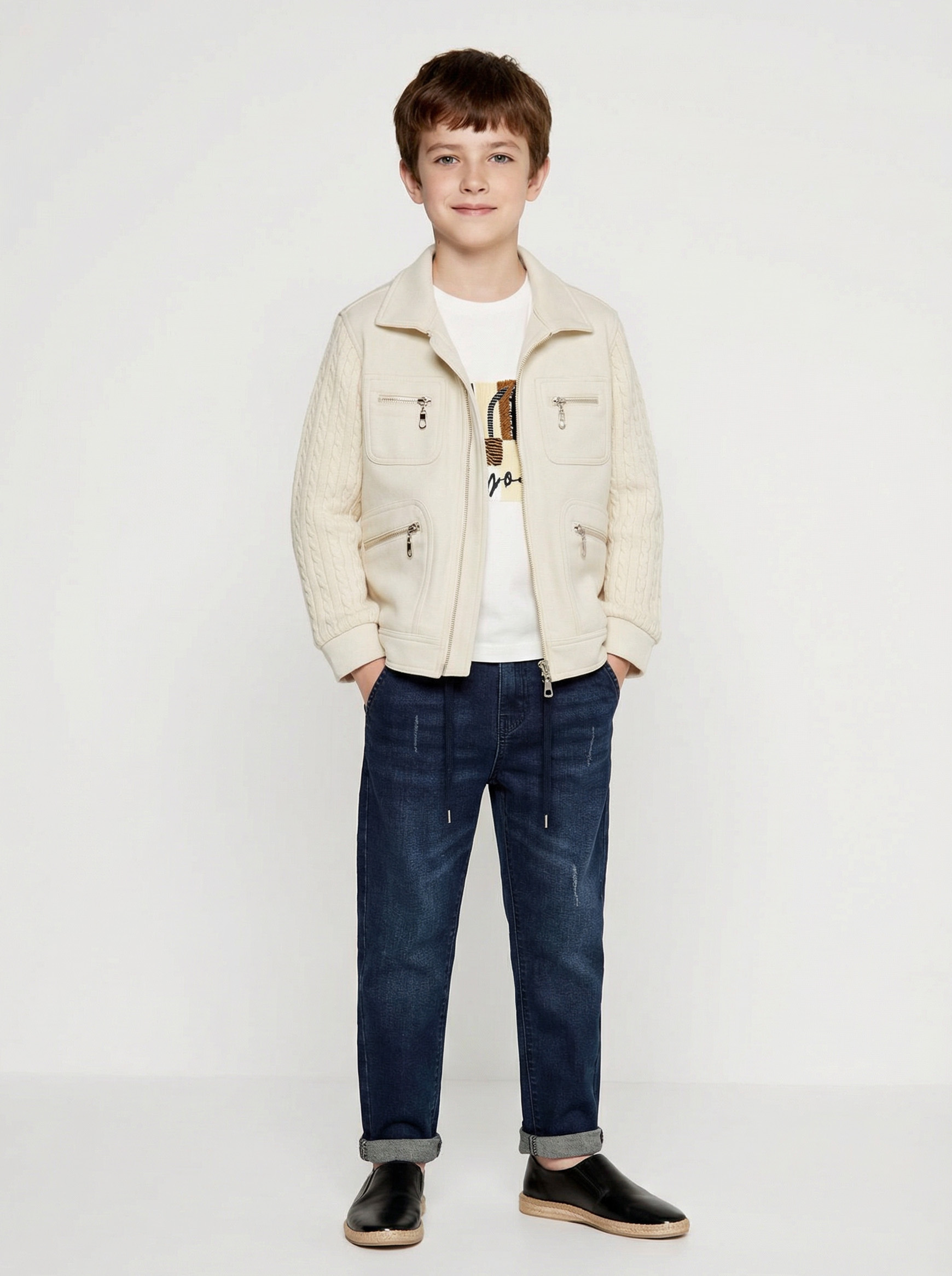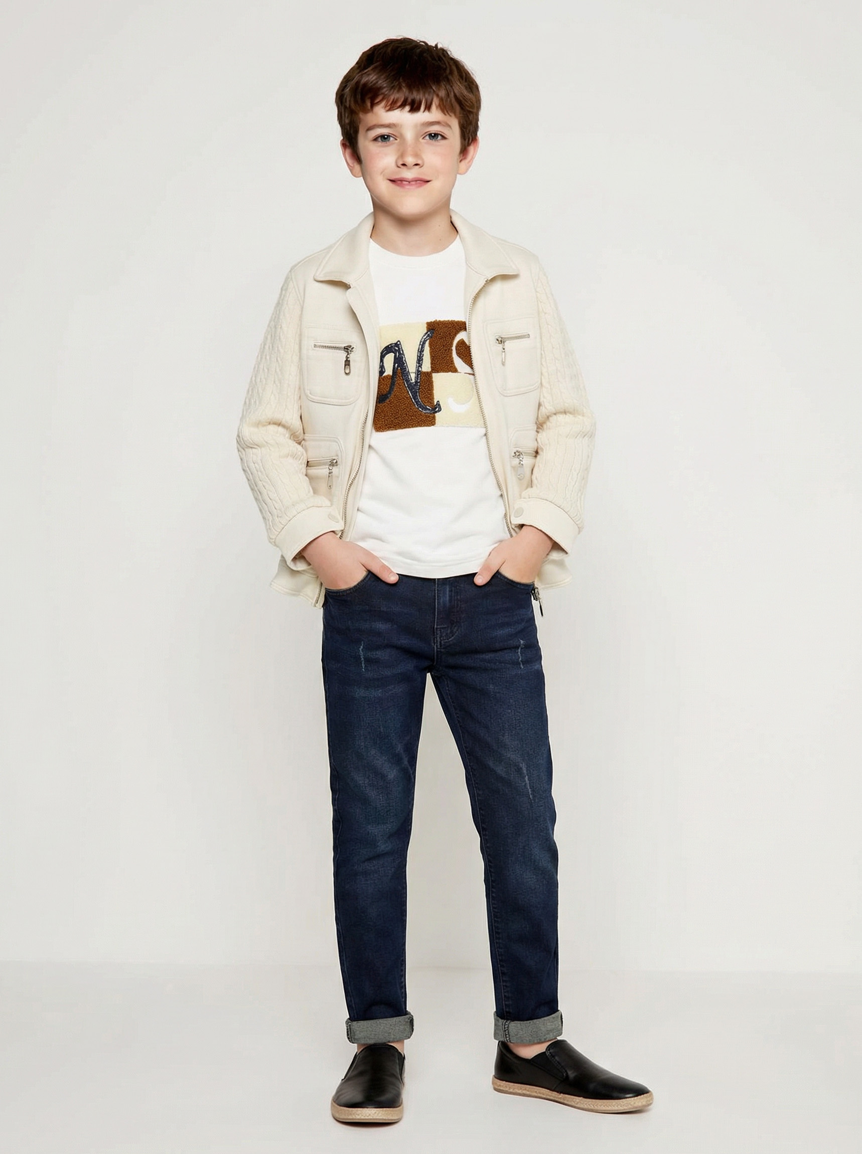 Erkek Çocuk 3'lü Alt Üst Takım 6-9 Yaş 13215 Ekru - Mavi - 4