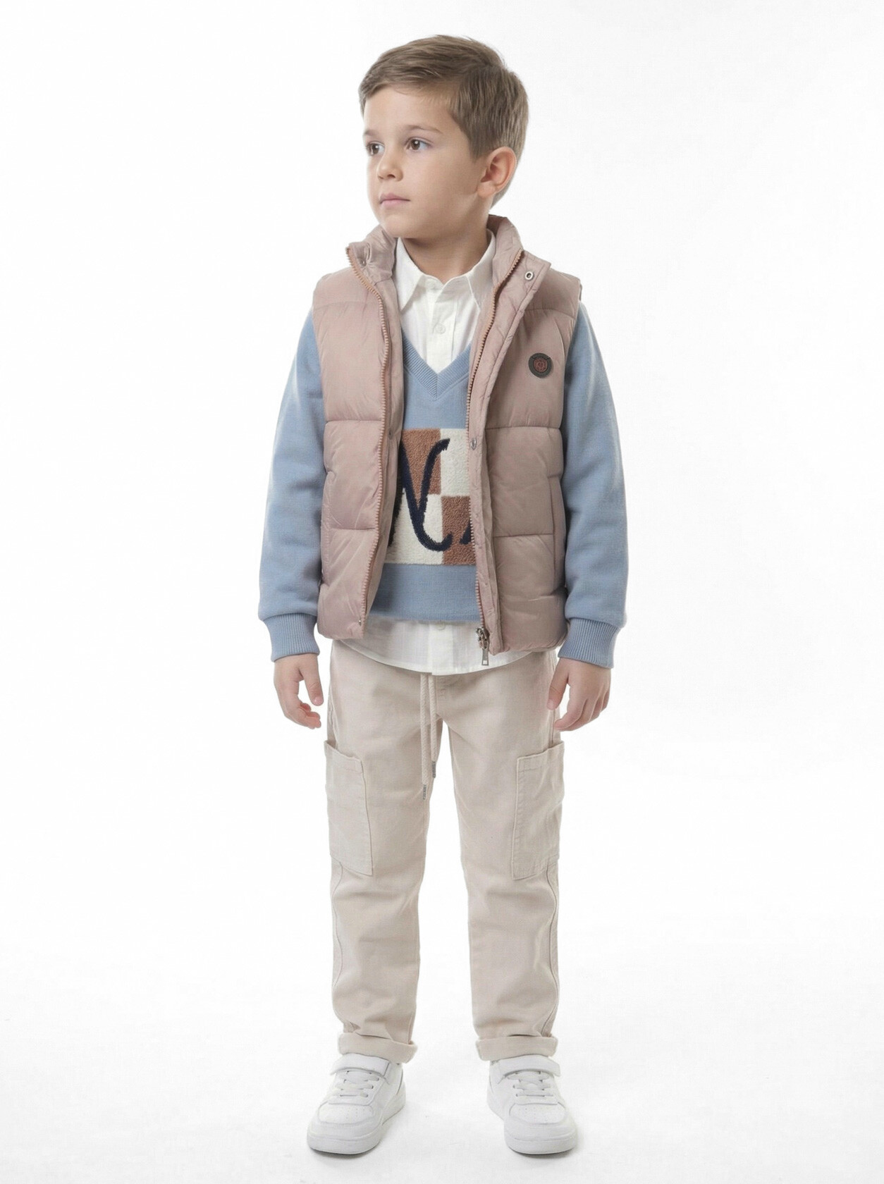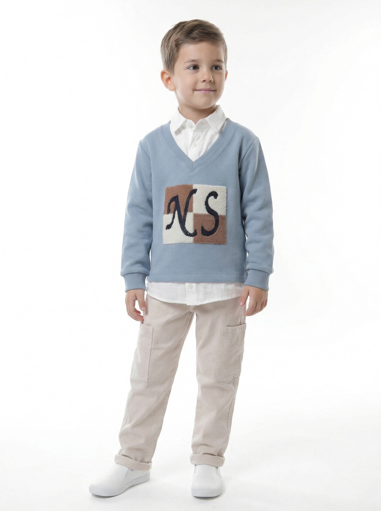 Bu şık erkek çocuk alt üst takımı, bahar sezonu için mükemmel bir seçimdir. Üst kısmı, yumuşak ve rahat bir kumaştan yapılmış, V yaka kesimi ile şıklık katıyor. Üzerindeki desen, modern bir görünüm sunarken, alt kısım ise cepli ve kordonlu tasarımıyla pratiklik sağlıyor.