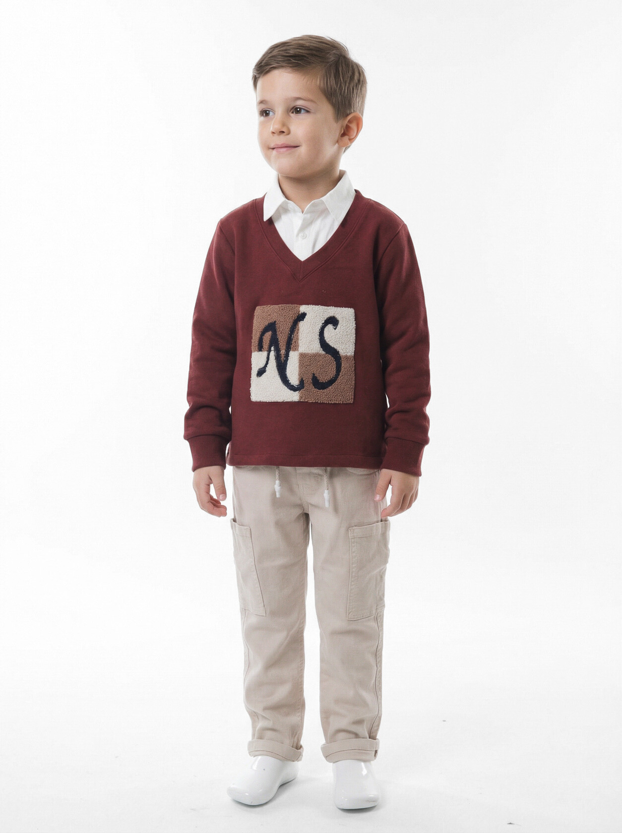 Bu şık erkek çocuk alt üst takımı, bahar sezonu için mükemmel bir seçimdir. Üst kısmı, yumuşak ve rahat bir kumaştan yapılmış, V yaka kesimi ile şıklık katıyor. Üzerindeki desen, modern bir görünüm sunarken, alt kısım ise cepli ve kordonlu tasarımıyla pratiklik sağlıyor.