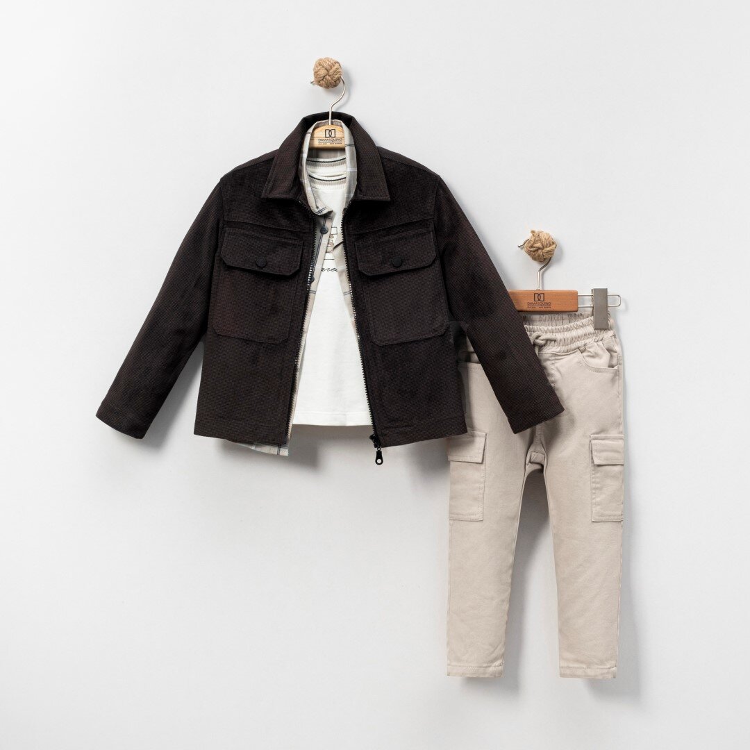 Bu şık erkek çocuk pantolon takımı, hem rahat hem de şık bir görünüm sunuyor. Siyah rengi ile her türlü kombinle uyum sağlarken, modern tasarımıyla çocukların tarzını tamamlıyor. Takım, kısa kollu üst kısmı ve rahat kesimi ile yaz aylarında ferah bir kullanım sunuyor.