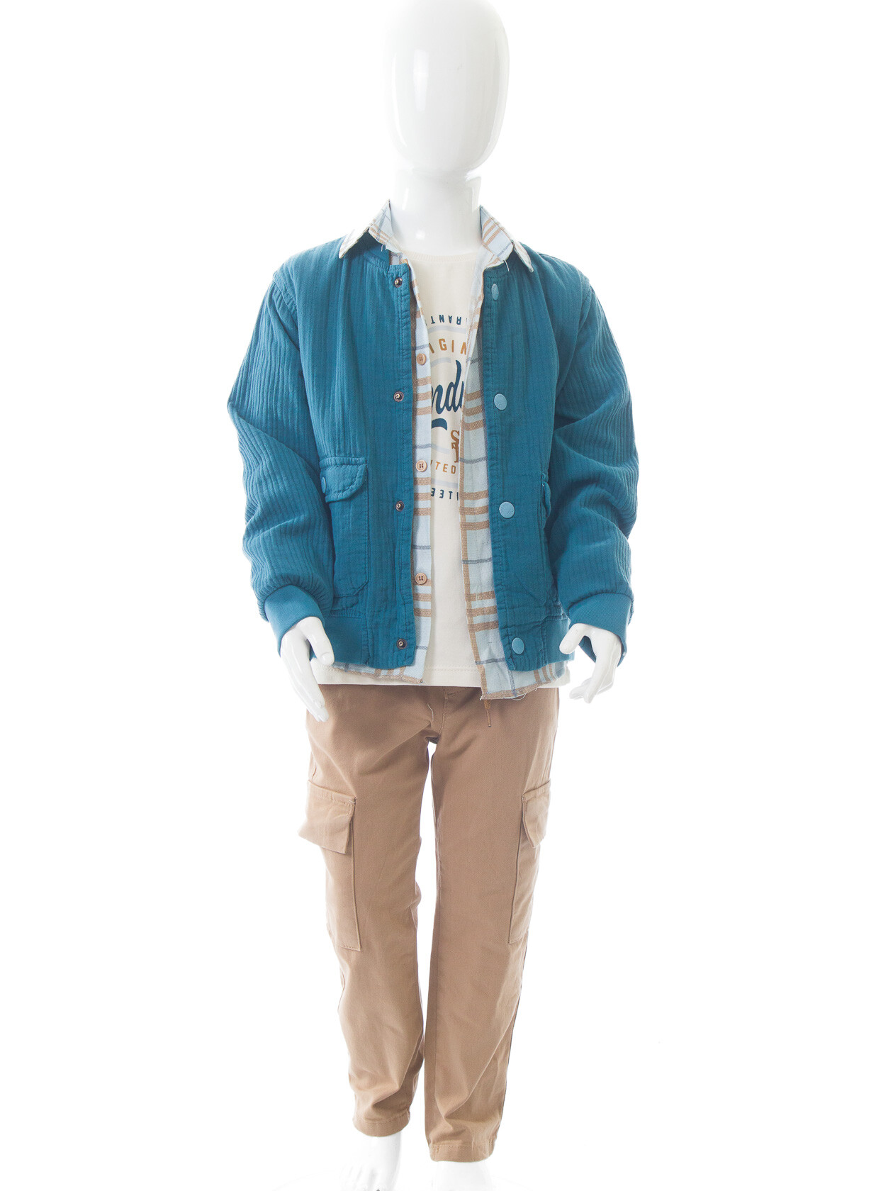 Erkek Çocuk 3'lü Alt Üst Takım 11-14 Yaş 14205 Mavi - Bej