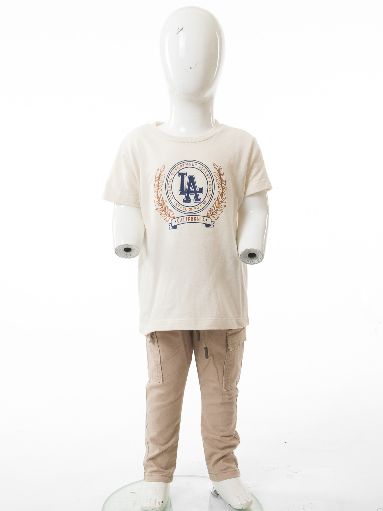 Erkek Çocuk 3'lü Alt Üst Takım 11-14 Yaş 14205 Ekru - Mavi