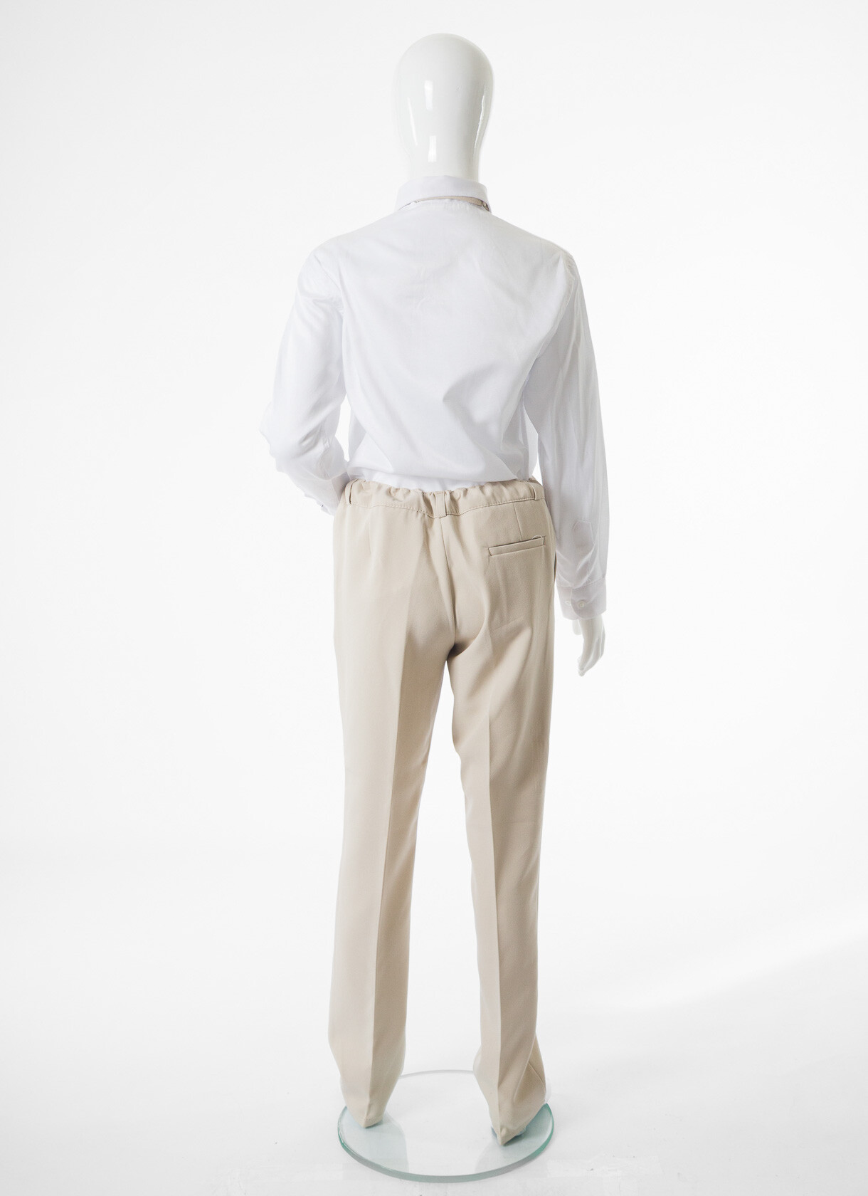 - Uzun kollu beyaz gömlek, zarif bir detay sunar.