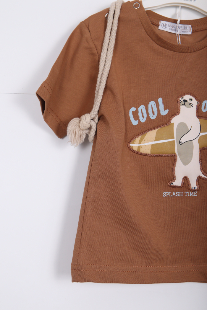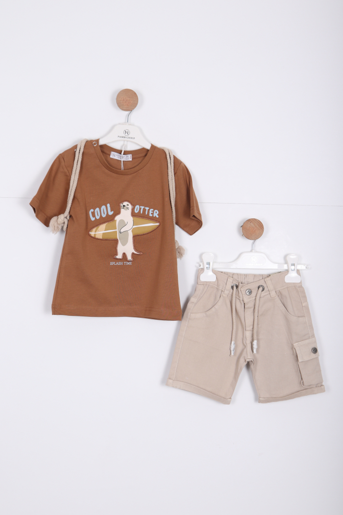 Bu erkek çocuk şort takımı, hem şık hem de rahat bir görünüm sunuyor. Üst kısımda yer alan "Cool Otter" baskısı, sevimli bir su samuru figürü ile çocukların ilgisini çekecek. Şort kısmı ise pratik cepleri ve lastikli bel yapısıyla günlük aktivitelerde mükemmel bir konfor sağlıyor.