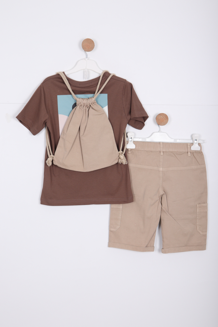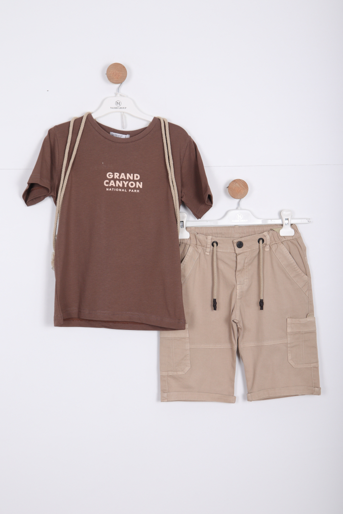 Erkek Çocuk Alt Üst Şort Takım 8-14 Yaş 4141 Kahverengi - 1
