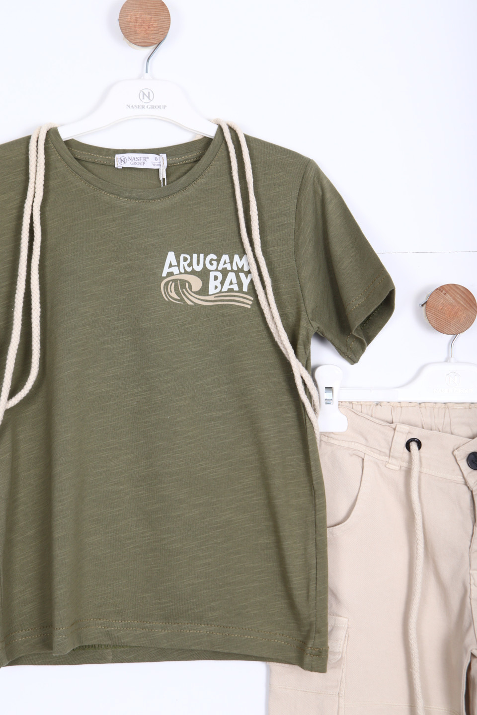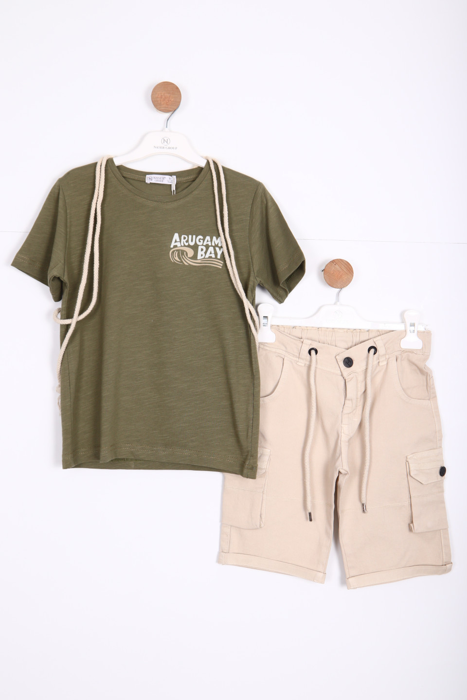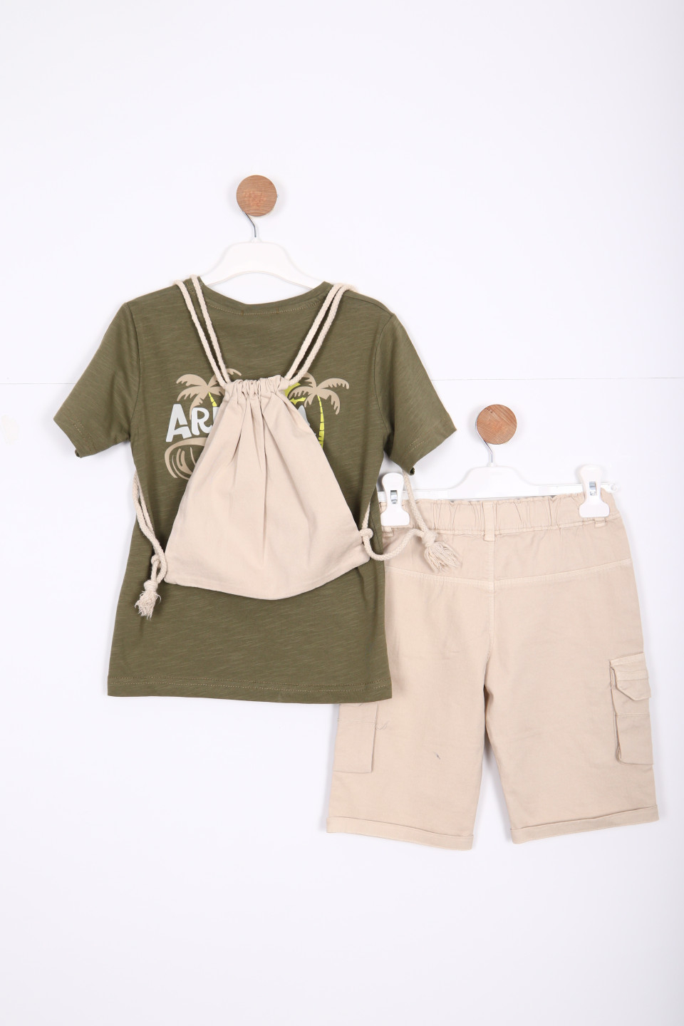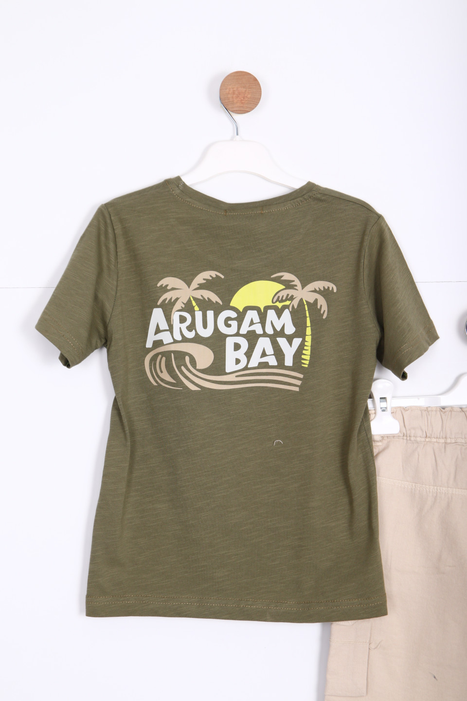 Erkek çocuklar için tasarlanmış bu şık ve konforlu alt üst takımı, yaz ayları için mükemmel bir seçimdir. Yeşil tişört, ön kısımda dikkat çekici bir "Arugam Bay" baskısına sahiptir. Tişört, kısa kolludur ve rahat bir kesime sahiptir. Şort ise bej rengindedir ve yan ceplerle pratik bir kullanım sunar.