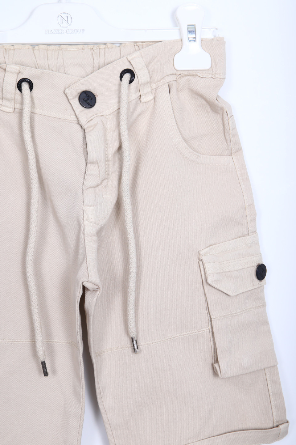 - Çekme ipi ve düğmeli bel detayı