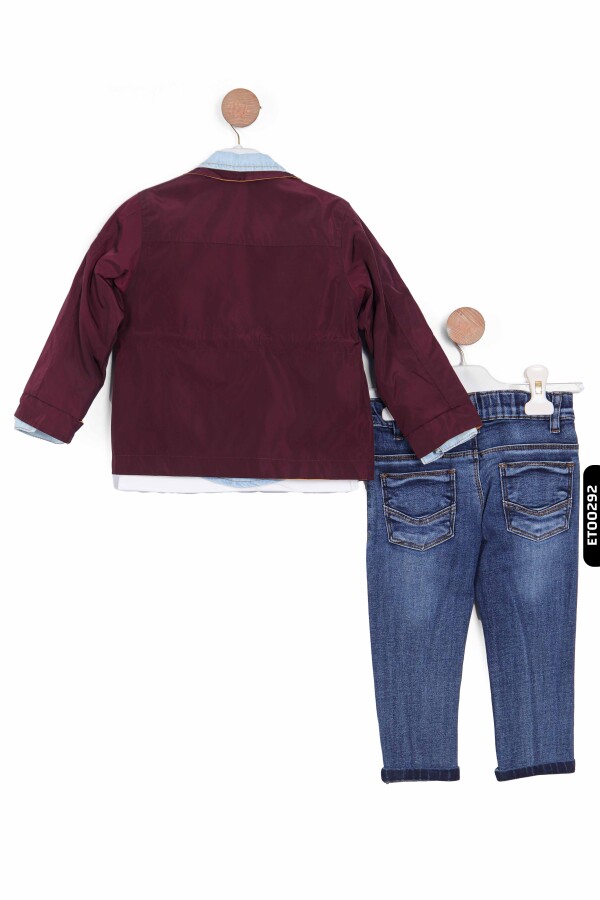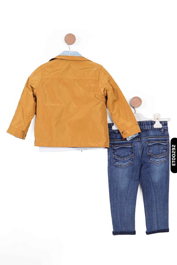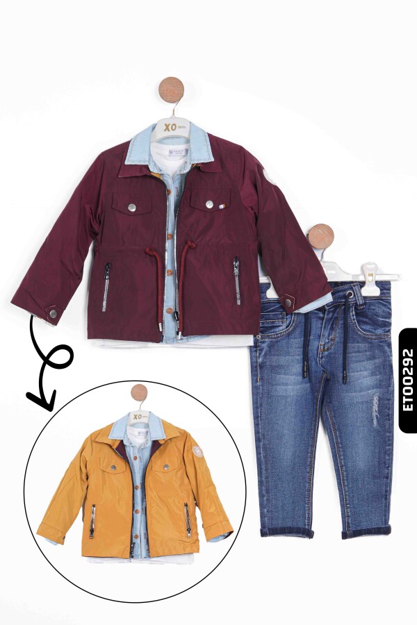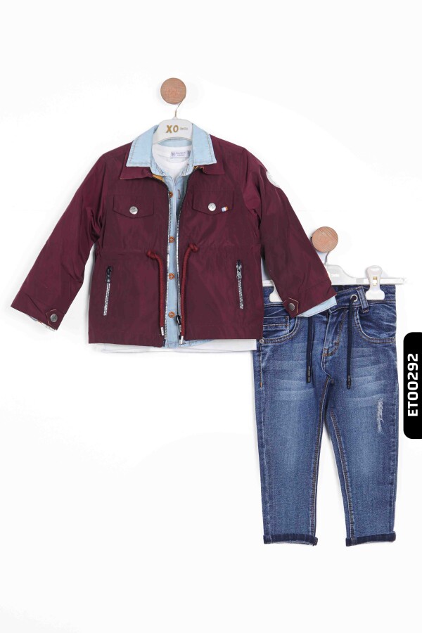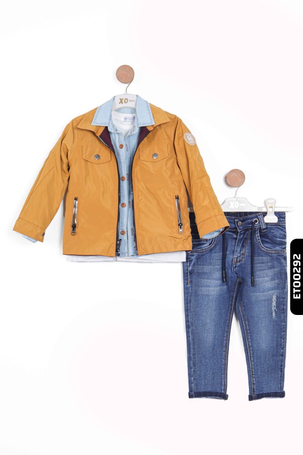 Çocuklar için tasarlanmış bu şık pantolon takımı, hem rahat hem de tarz sahibi bir görünüm sunuyor. Hırkası, hafif bir kapüşonla birlikte gelirken, ön kısmında iki adet fermuarlı cepli ve düğme detayları bulunuyor. Pantolon ise klasik bir jeans tarzında olup, modern bir görünüm kazandırıyor.