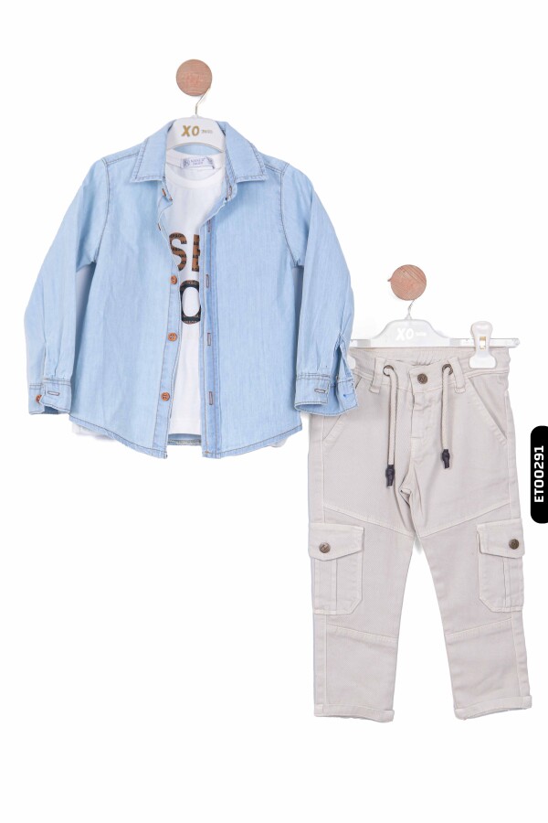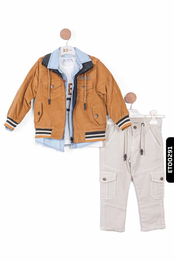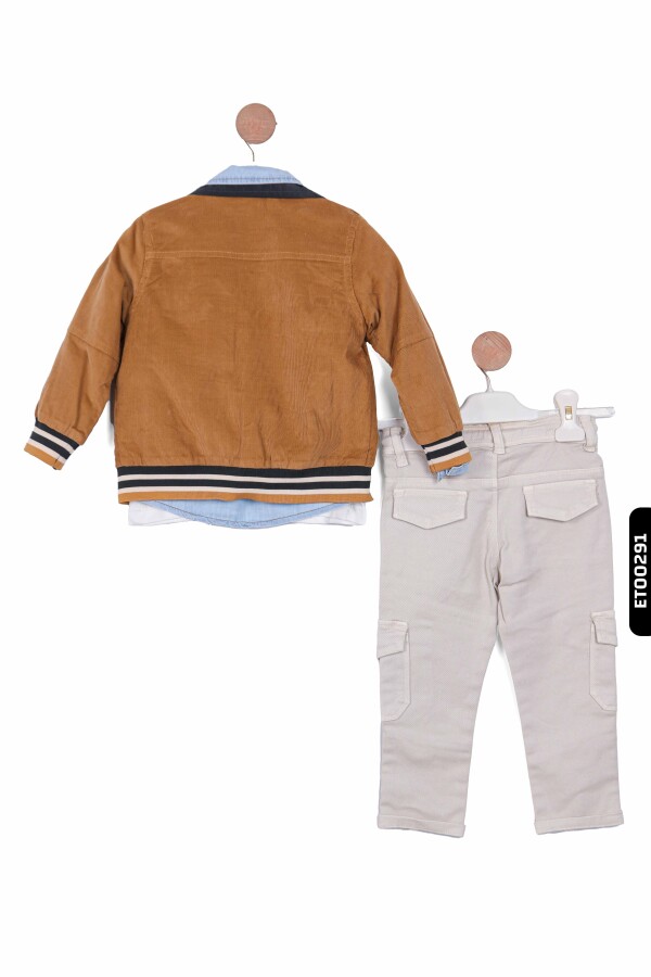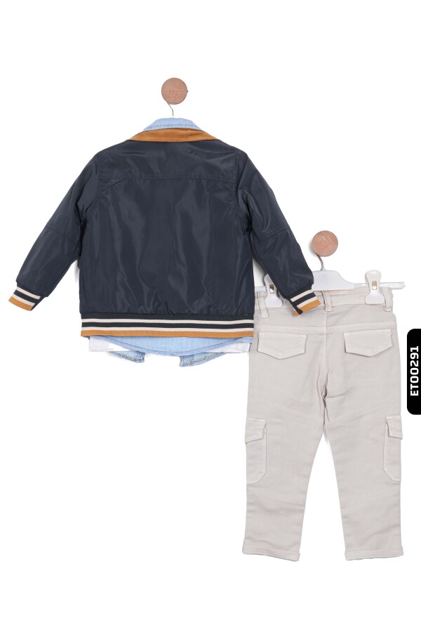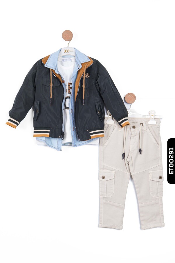 Çocuklarınız için hem şık hem de rahat bir kıyafet arıyorsanız, bu erkek çocuk pantolon takımı mükemmel bir seçimdir. Ceket, iki farklı renk seçeneği ile sunuluyor ve modern bir görünüm için denim yaka detayıyla zenginleştirilmiştir.