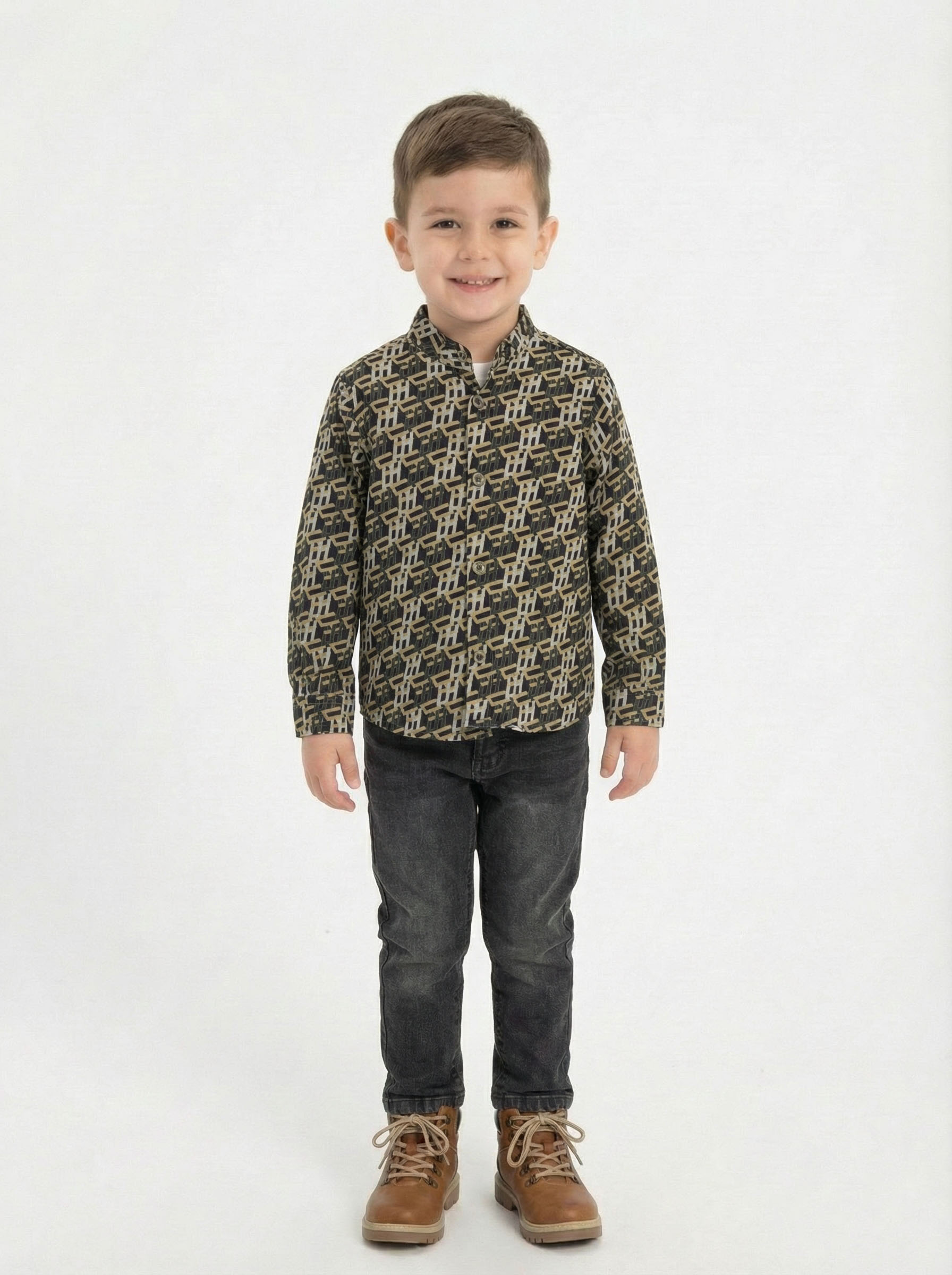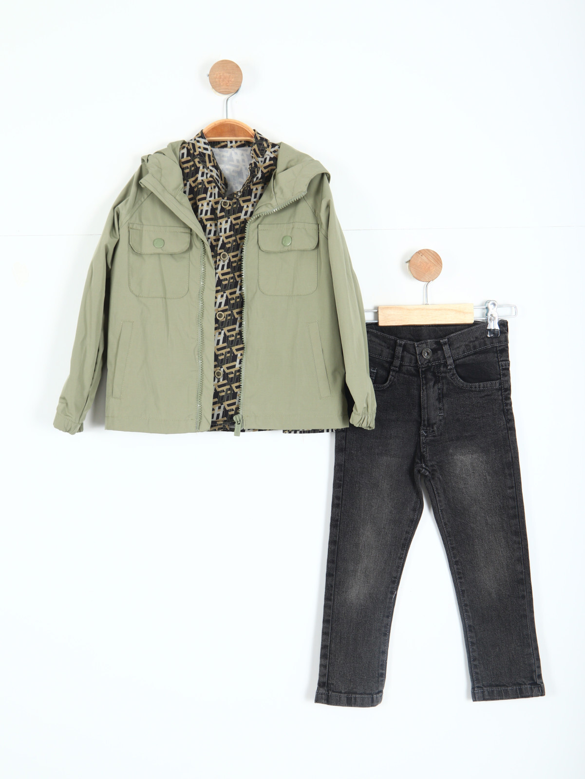Çocuklar için şıklığı ve konforu bir arada sunan bu erkek çocuk alt üst takımı, her mevsim giyilebilecek ideal bir seçenektir. Kapüşonlu dış ceketi, şık baskılı gömleği ve rahat pantolonu ile hem sportif hem de şık bir görünüm sağlar.