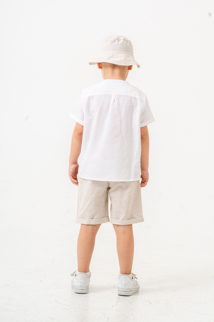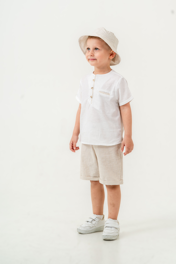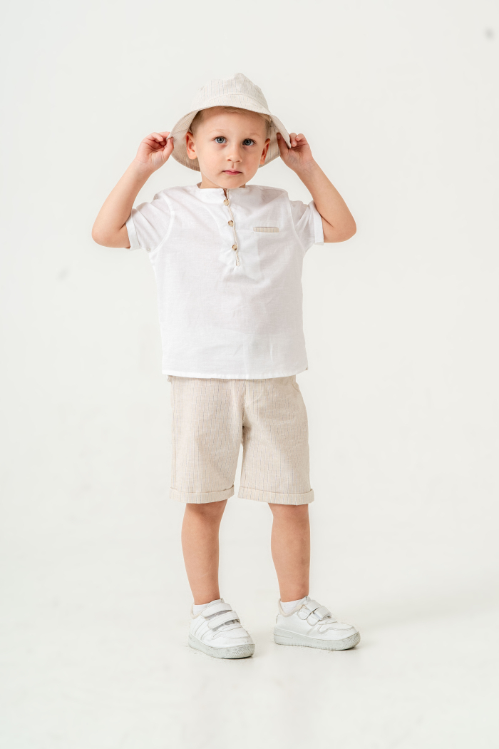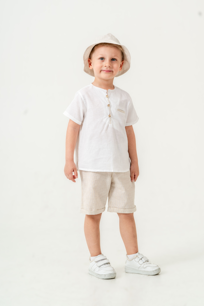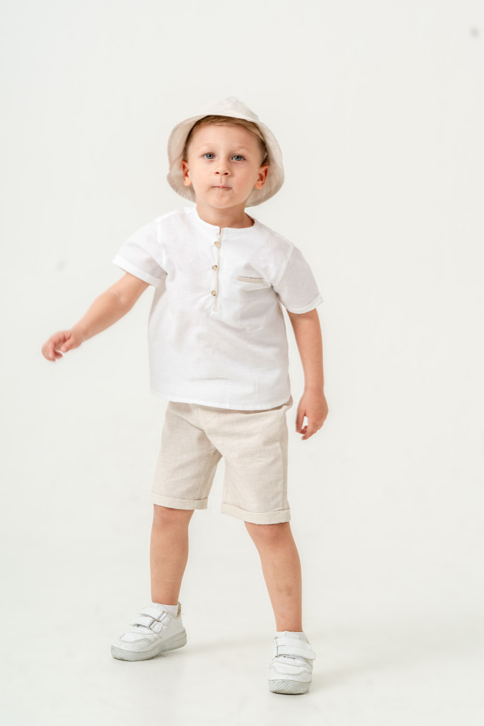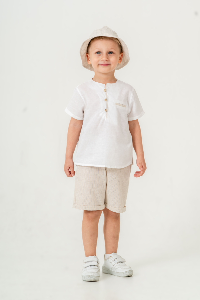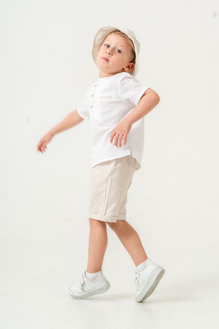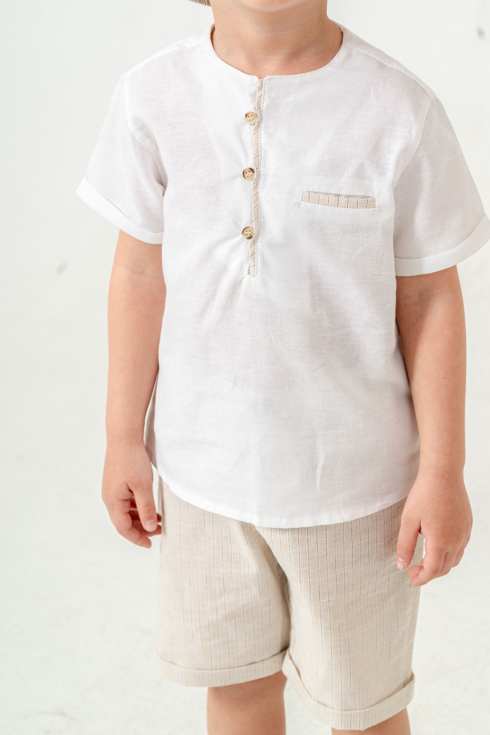 Bu şık ve rahat erkek çocuk pantolon takımı, yaz günleri için mükemmel bir seçimdir. Ekru rengindeki tişört, hafif kumaşı sayesinde ferah bir kullanım sunarken, ön kısmındaki düğmelerle şıklığını artırıyor.