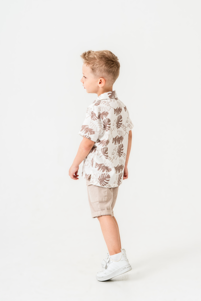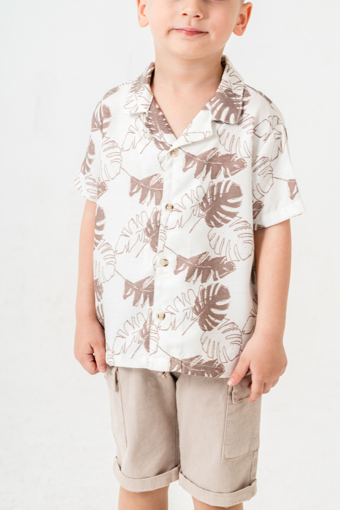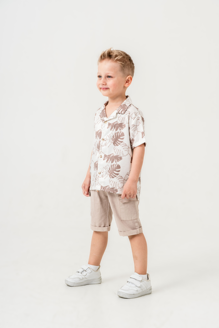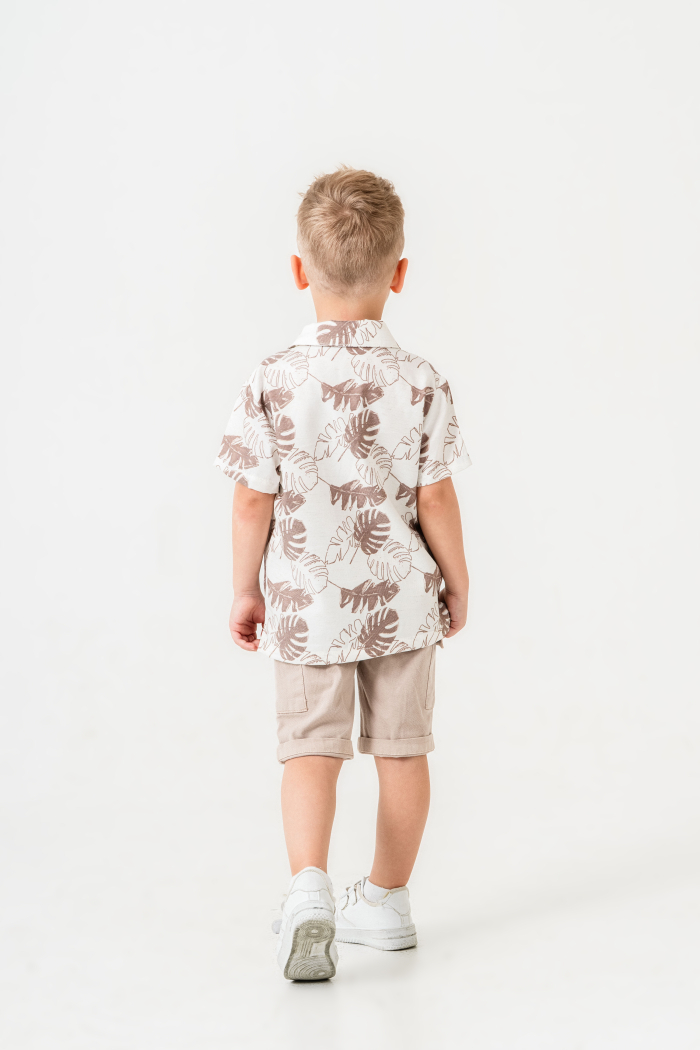 Çocuklar için tasarlanmış bu şık ve rahat alt üst takımı, yaz günlerinde mükemmel bir seçimdir. Üst kısmı kısa kollu ve desenli, şort kısmı ise rahat bir kesime sahiptir. Bu set, hem oyun oynamak hem de sosyal etkinlikler için idealdir.