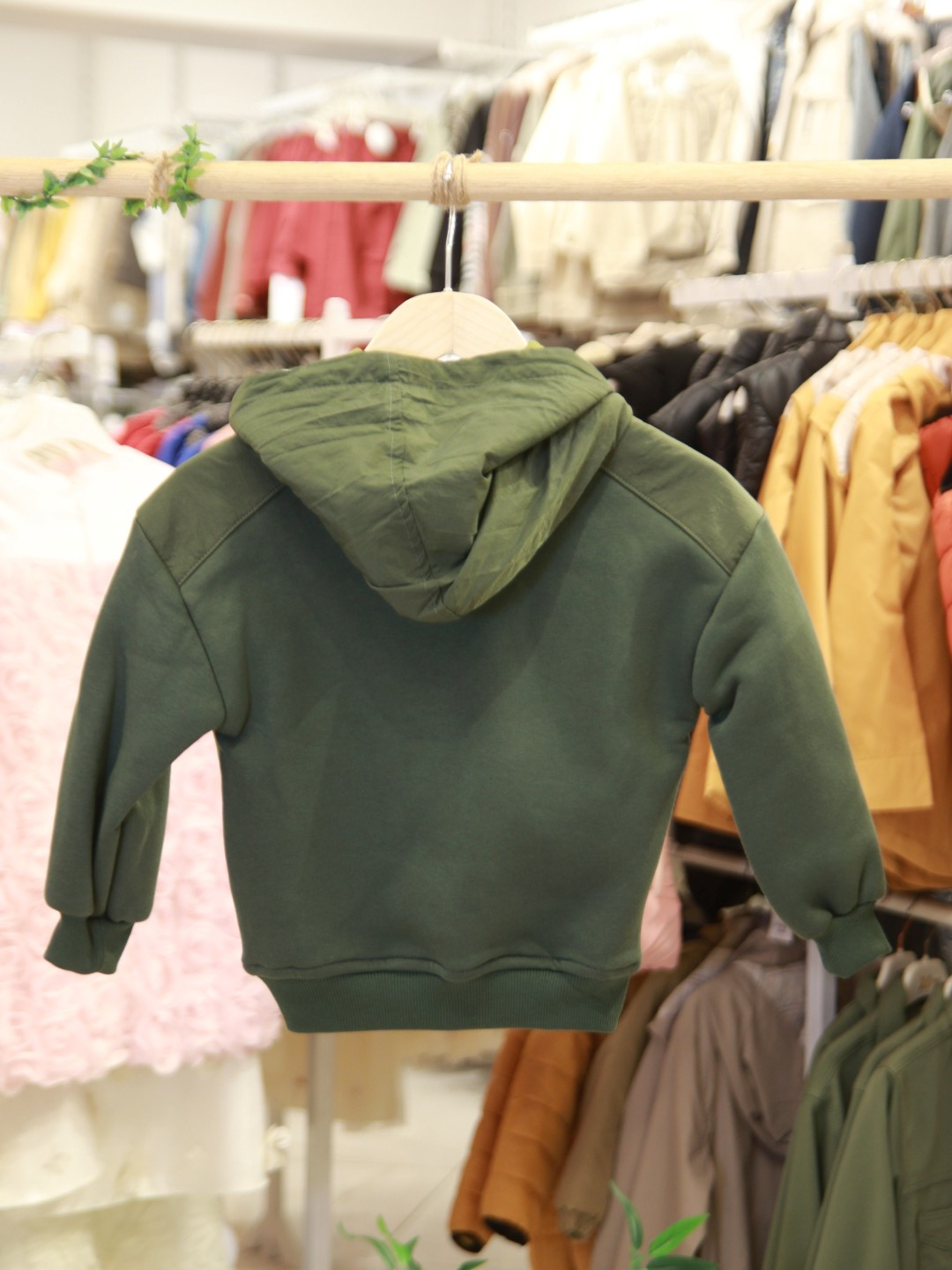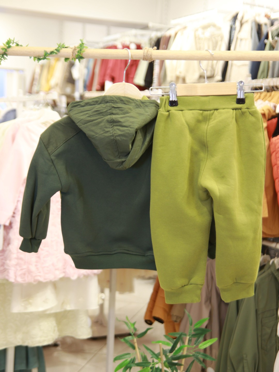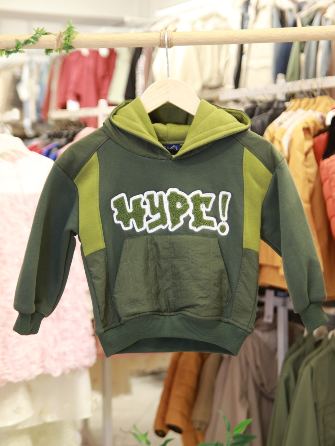 طقم رياضي للأولاد مثالي لفصل الشتاء، يوفر الدفء والراحة. الجزء العلوي مزود بغطاء للرأس (هودي) بدون سحاب، مع جيب أمامي لسهولة الاستخدام. الأكمام طويلة وياقة دائرية. البنطال مزود بحزام خصر مطاطي مع رباط لضبط المقاس، مما يتيح حرية الحركة. يأتي بلون زيتي بدرجات مختلفة، ليمنح مظهرًا عصريًا ورياضيًا. الطباعة الكبيرة "HYPE!" على الصدر تضيف لمسة مرحة ونشطة.