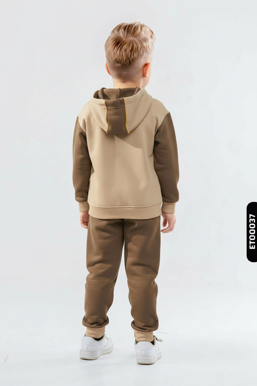 تتميز هذه الطقم الرياضي للأولاد بتصميم عصري ومريح، مثالي لفصل الشتاء. الجزء العلوي مزود بغطاء للرأس (هودي) يوفر دفئًا إضافيًا وحماية، ويأتي بدون سحاب لسهولة الارتداء. الألوان المتباينة مع لمسات صفراء تضيف مظهرًا رياضيًا وأنيقًا. يحتوي السويتشيرت على جيب kangaroo ورباط للغطاء، والسروال الرياضي مزود بأساور مطاطية مع تفاصيل ملونة متناسقة. الأكمام طويلة وطوق الرقبة دائري لضمان راحة الطفل.