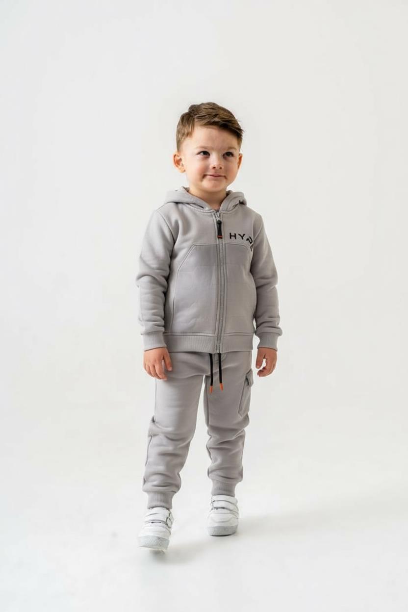 Bu erkek çocuk eşofman takımı, rahat ve fonksiyonel tasarımıyla kış ayları için mükemmel bir tercih. Kapüşonlu üst kısmı, tam fermuarlı yapısı ile kolayca giyilip çıkarılabilir. Ön tarafında yer alan geniş cepler ve pantolon üzerindeki yan cep, küçük eşyalar için kullanışlıdır. Pantolon, bel kısmında kordon detayı ile ayarlanabilir. Uzun kollu üst ve paçaları lastikli pantolon, soğuk havalarda sıcak tutar. Sade gri rengi ve modern kesimiyle günlük kullanıma uygundur.