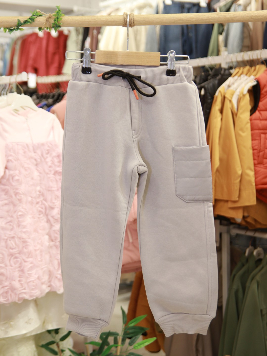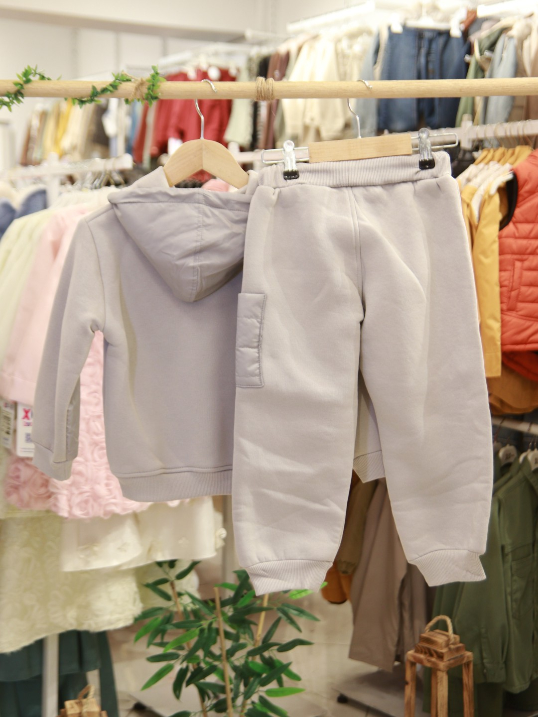 طقم رياضي للأطفال من الأولاد يتميز بالراحة والعملية، مثالي لفصل الشتاء. يحتوي الجزء العلوي على كابوشون وسحاب كامل لسهولة اللبس والخلع. يتميز بجيوب واسعة في الأمام وجيب جانبي في البنطال لحمل الأغراض الصغيرة. البنطال مزود بحبل قابل للتعديل عند الخصر لضمان ملاءمة أفضل. بأكمام طويلة وأساور مطاطية في أسفل البنطال للحفاظ على الدفء في الأيام الباردة. لونه الرمادي البسيط وتصميمه العصري يجعله مناسباً للاستعمال اليومي.