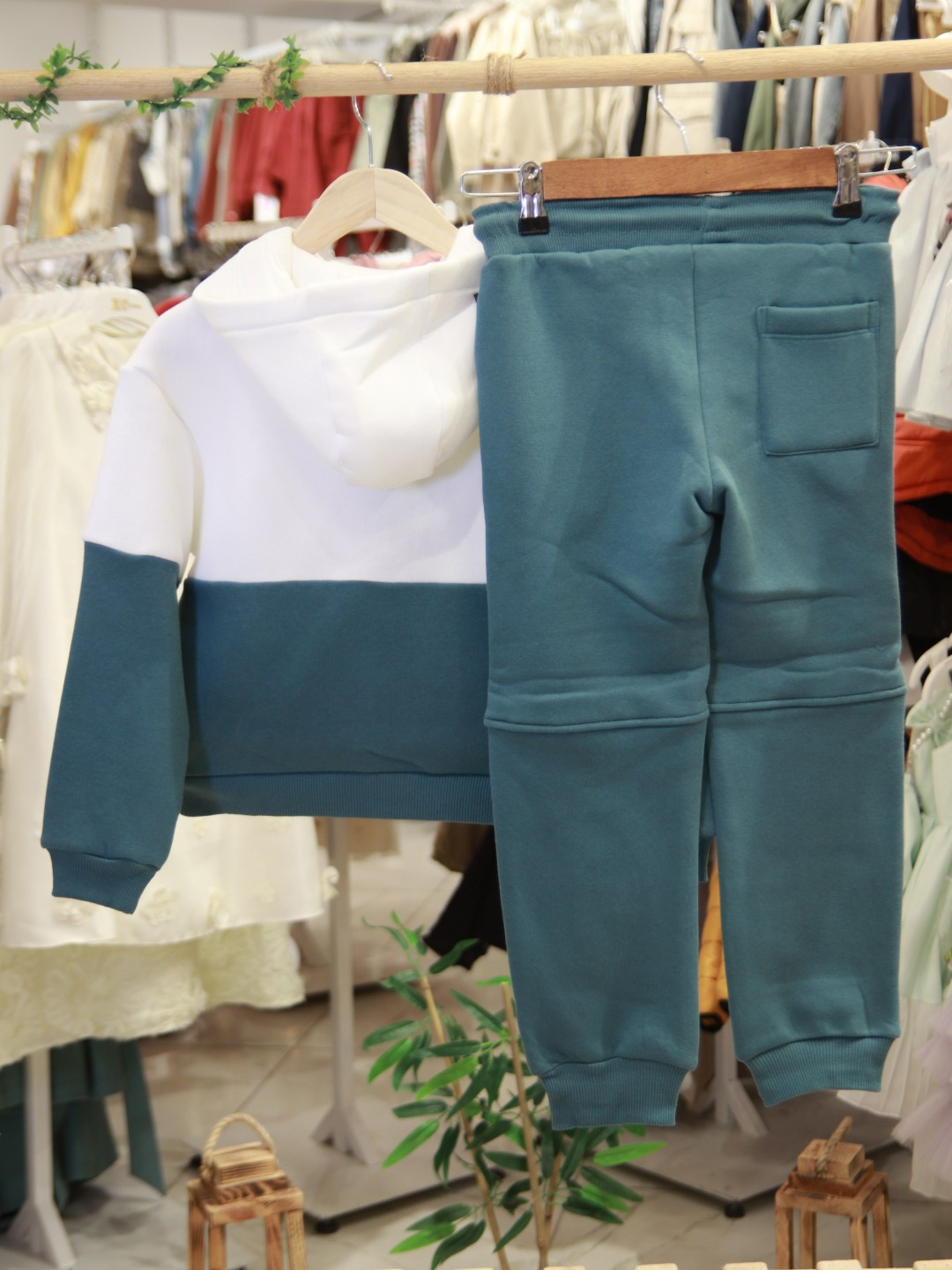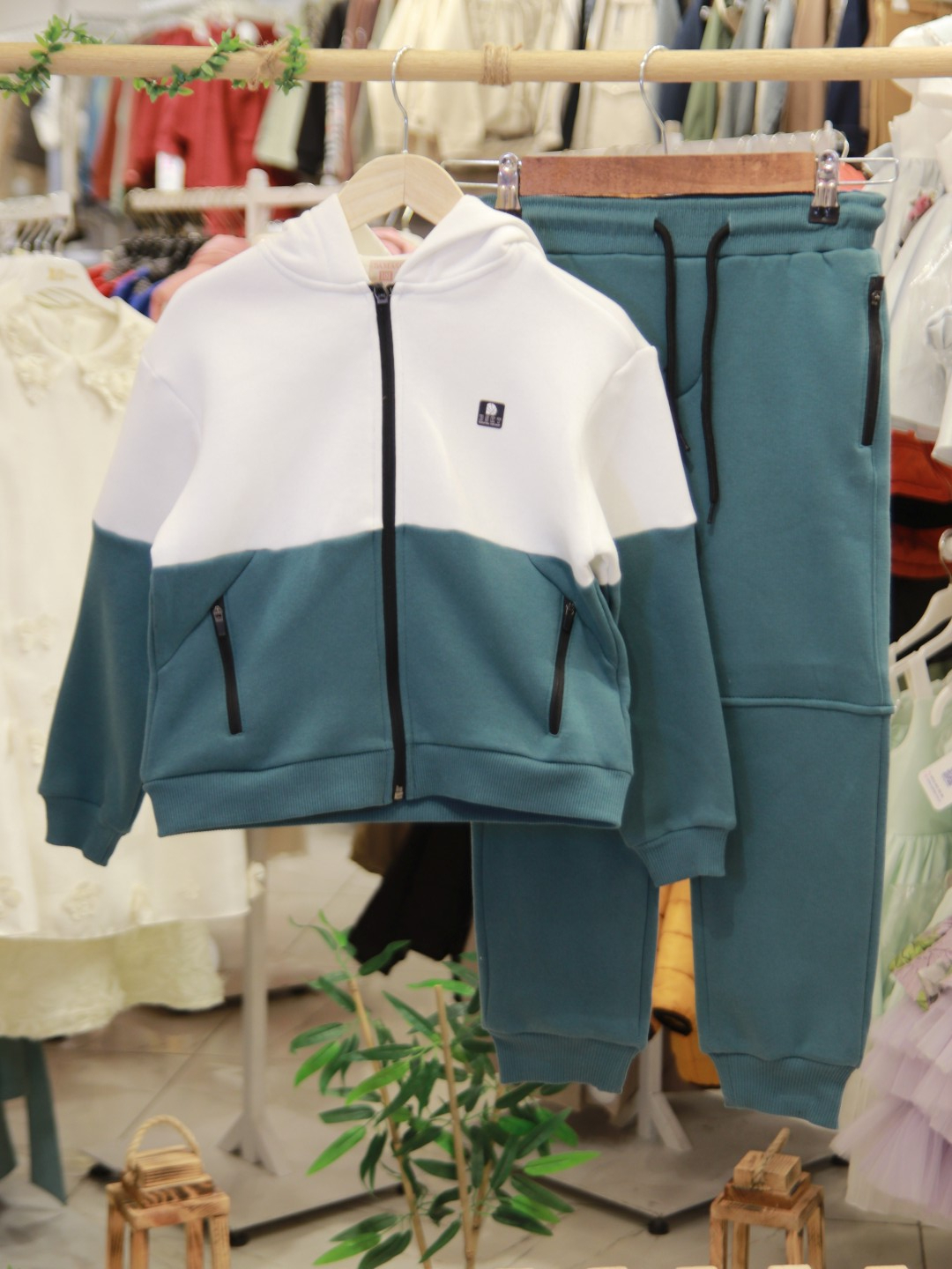 Bu erkek çocuk eşofman takımı, kış aylarında sıcak ve rahat bir giyim deneyimi sunmak için tasarlanmıştır. Kapüşonlu üst kısmı ve fermuarlı önü ile kullanımı oldukça pratiktir. Kahverengi ve beyaz renklerin şık uyumuyla dikkat çeken takım, uzun kollu ve cepli yapısıyla hem fonksiyonel hem de modern bir görünüm sağlar. Alt kısmı bağcıklı ve lastikli paçalarla konforlu bir oturuş sunar. Spor ve günlük kullanım için ideal olan bu takım, çocukların hareket özgürlüğünü kısıtlamadan stil sahibi olmalarını sağlar.