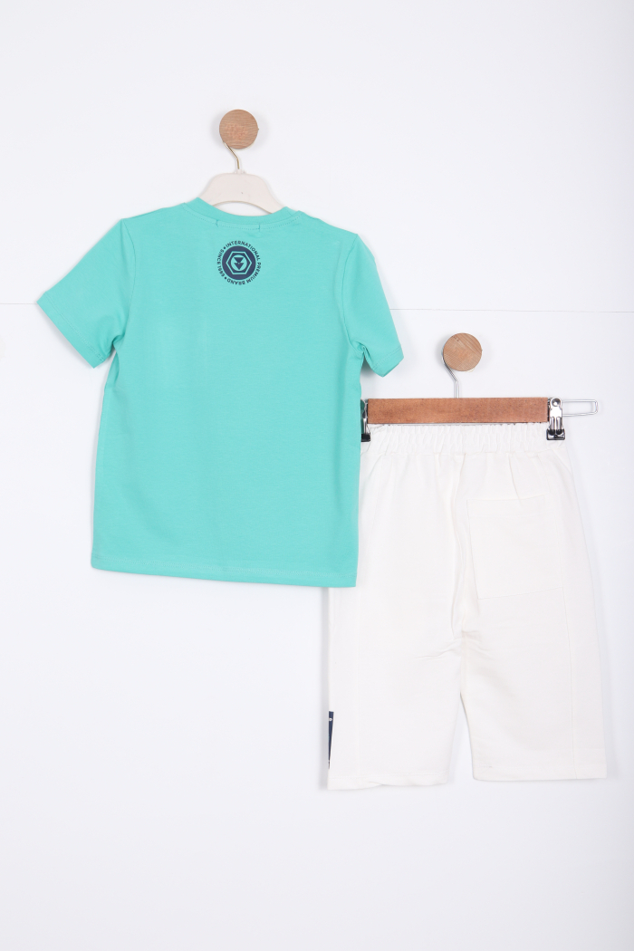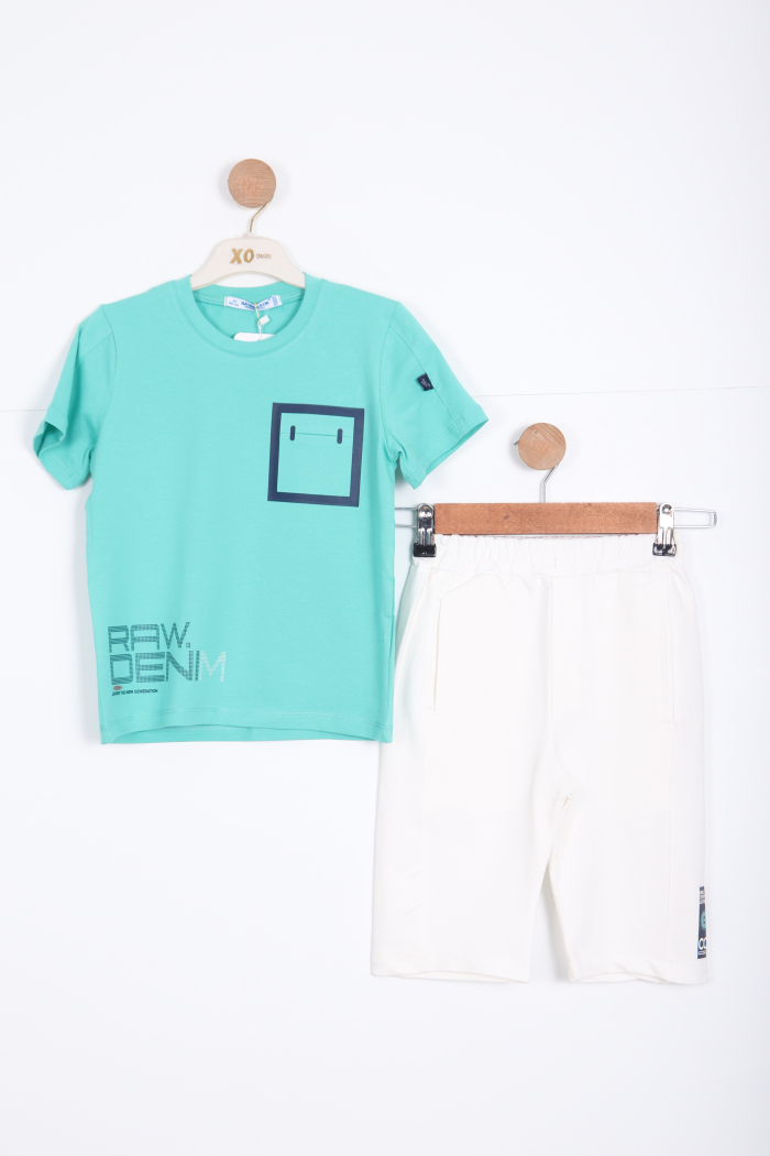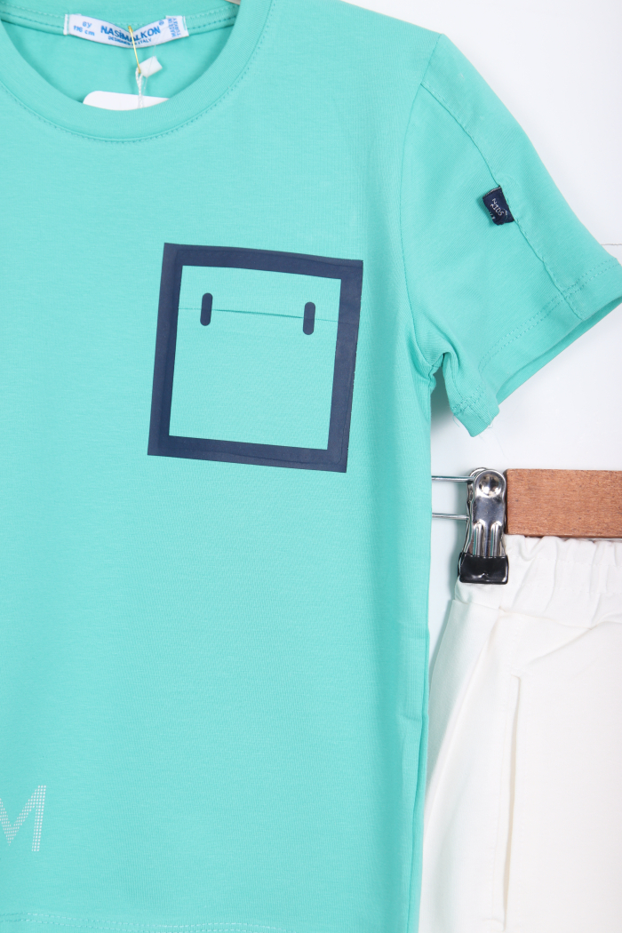 Bu şık erkek çocuk eşofman takımı, hem konforlu hem de şık bir görünüm sunuyor. Turkuaz renkli tişört, kısa kollu tasarımıyla sıcak günlerde rahatlık sağlarken, ön kısımda bulunan cep detayıyla da göz alıcı bir stil oluşturuyor. Pantolon kısmı ise beyaz renkte, esnek bel bandı ile tam oturuyor ve iki yan cepli tasarımıyla pratik bir kullanım sunuyor.