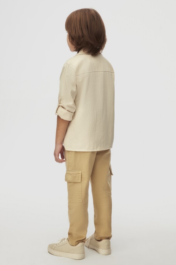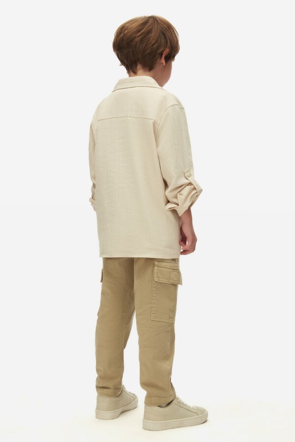 Bu şık erkek çocuk gömleği, günlük kullanım için mükemmel bir seçenektir. Krem rengiyle her türlü kıyafetle rahatlıkla kombinlenebilir. Gömlek, ön kısmında bir cep ve düğmelerle kapatılan tasarımı ile şıklığı ve işlevselliği bir araya getiriyor. Kol kısmı katlanabilir, böylece sıcak havalarda da rahatlık sağlar.