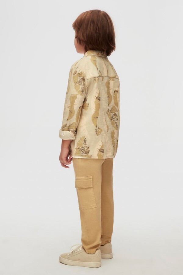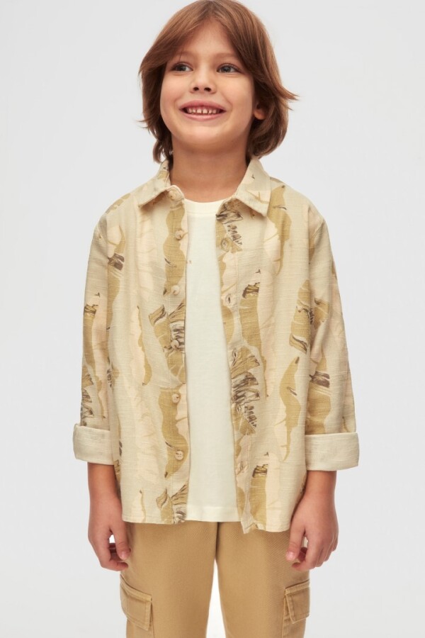 Bu şık erkek çocuk gömleği, doğal tonlardaki desenleriyle dikkat çekiyor. Uzun kollu yapısı, serin havalarda rahatlıkla giyilebilir. Ön kısmında düğmelerle kapatılan bir tasarıma sahip olan bu gömlek, hem günlük hem de özel etkinlikler için ideal bir seçimdir.