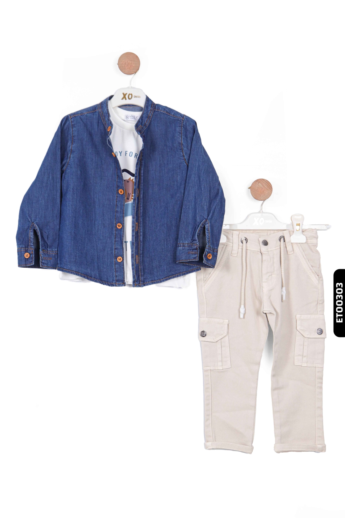 Bu şık erkek çocuk alt üst takımı, rahat ve kullanışlı tasarımıyla günlük giyimde öne çıkar. Ceket kapüşonlu ve fermuarlı olup, iki renk tonunun birleşiminden oluşan modern bir görünüm sunar. Kolları uzun ve bilek kısmında esnek ribana detayları bulunur. Ceketin cep detayları hem estetik hem de fonksiyoneldir. Alt kısmı ise kordonlu ve cepli pantolondan oluşur, rahat hareket imkanı sağlar. Bej tonlarındaki pantolon, ekstra cep detaylarıyla sportif ve pratik bir tarz yakalar.