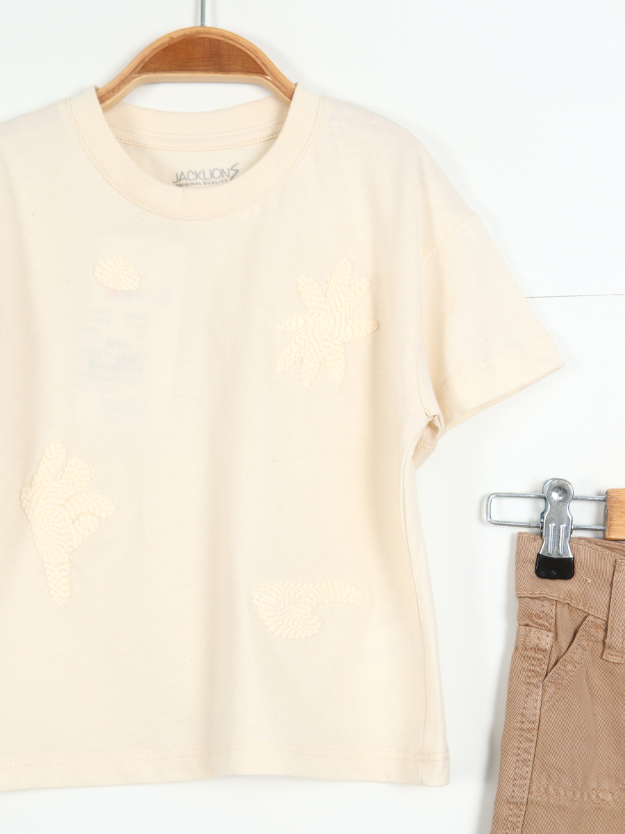 Erkek Çocuk 2'li Alt Üst Kombin Takmı 1-4 Yaş SET0459 Krem