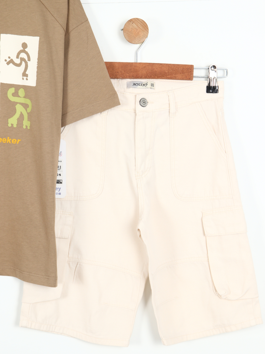 Erkek Çocuk 2'li Kombin Takmı 8-14 YaŞ SET0430 Bej