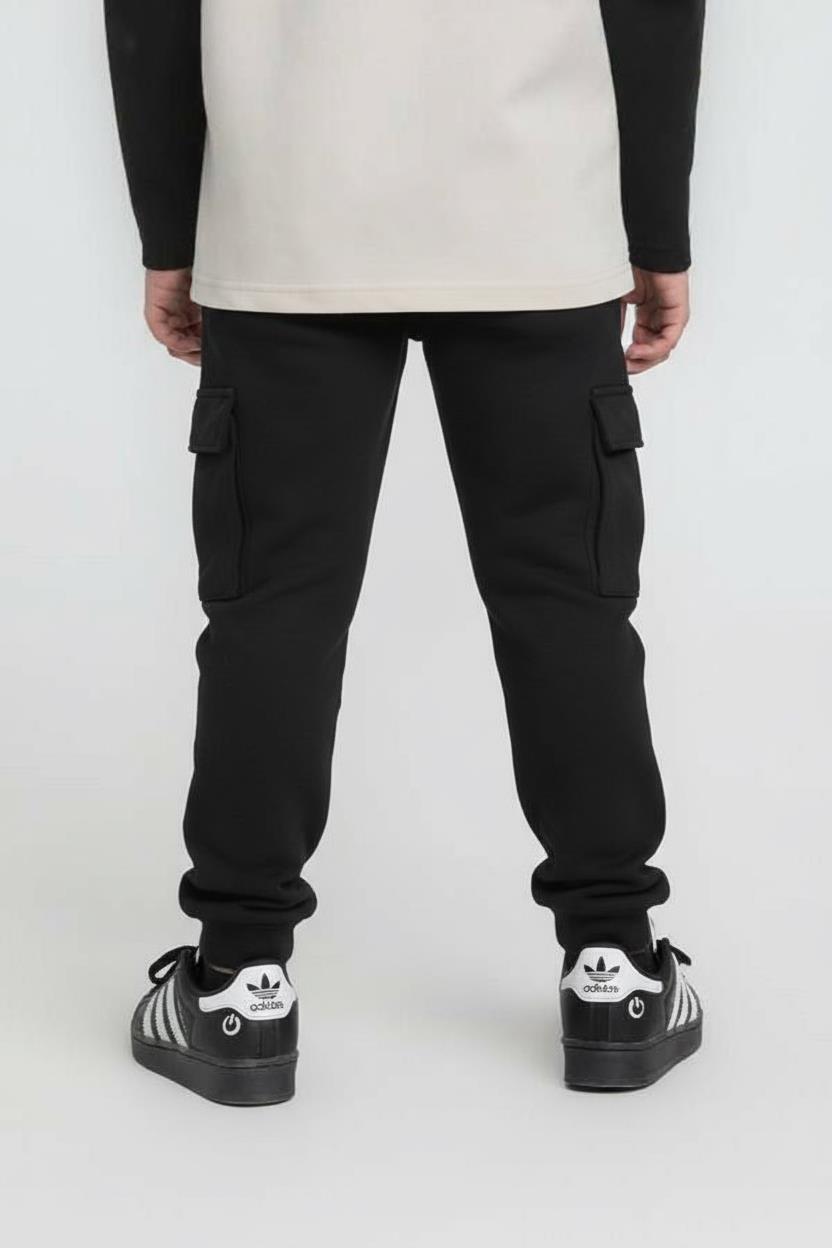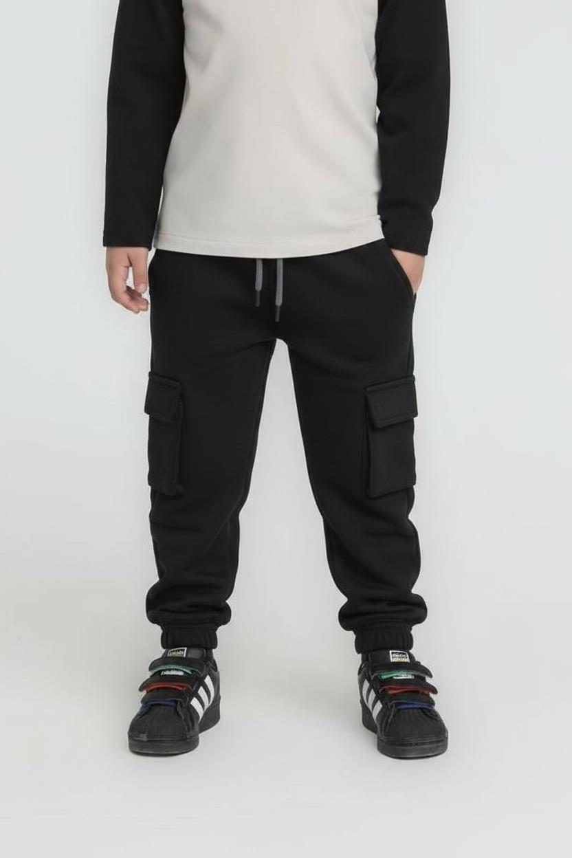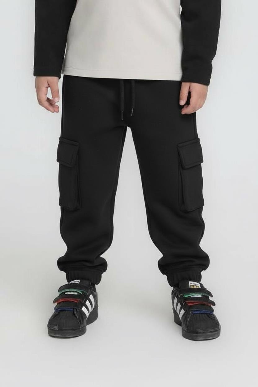 Erkek çocuklar için tasarlanmış bu siyah pantolon, rahatlığı ve şıklığı bir arada sunar. Kış sezonu için ideal olan model, kalın ve sıcak tutan kumaşı ile soğuk havalarda konfor sağlar. Bel kısmındaki kordon sayesinde ayarlanabilir yapıya sahiptir. Pantolonun yanlarında iki adet kapaklı cep bulunur, bu cepler hem şıklık katar hem de küçük eşyaların taşınmasına olanak sağlar. Paçalar lastiklidir, böylece hem hareket kolaylığı sunar hem de pantolonun paçaları yükselmez.