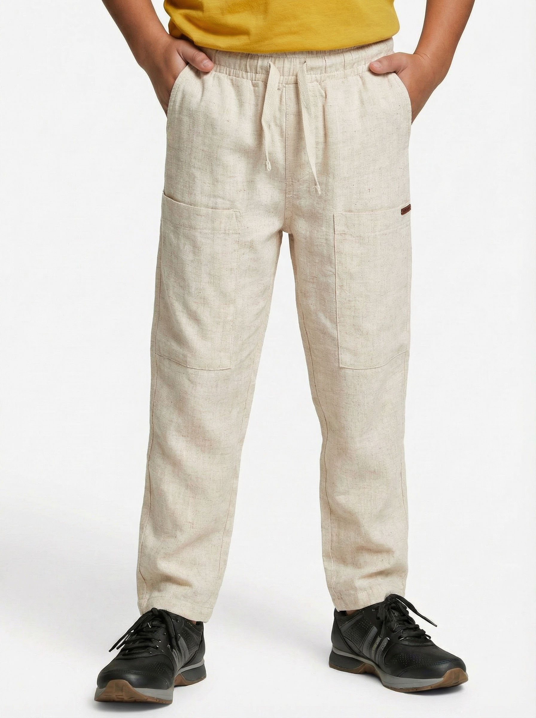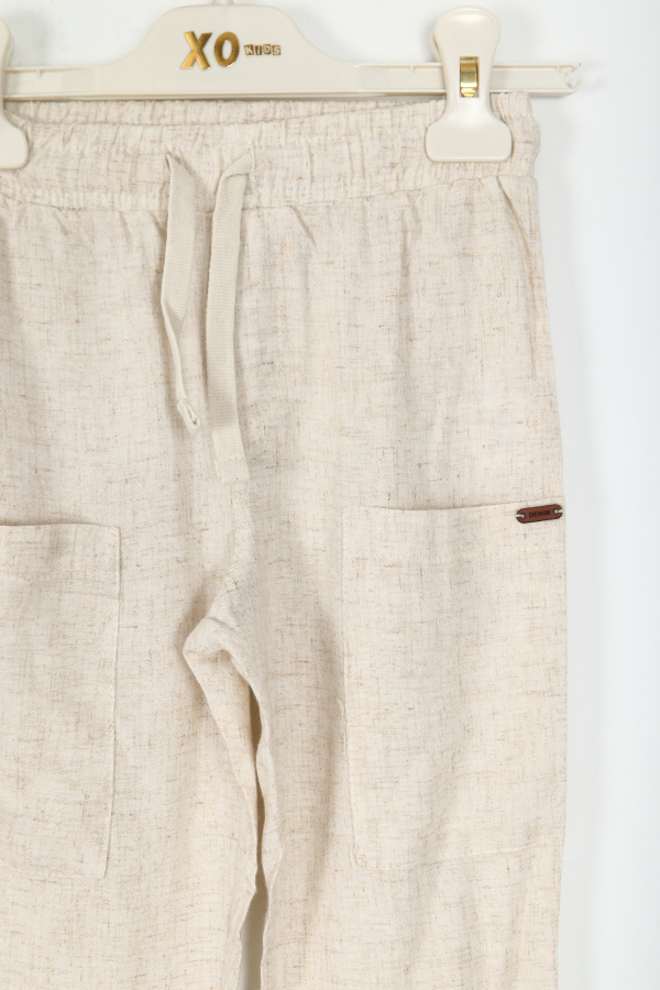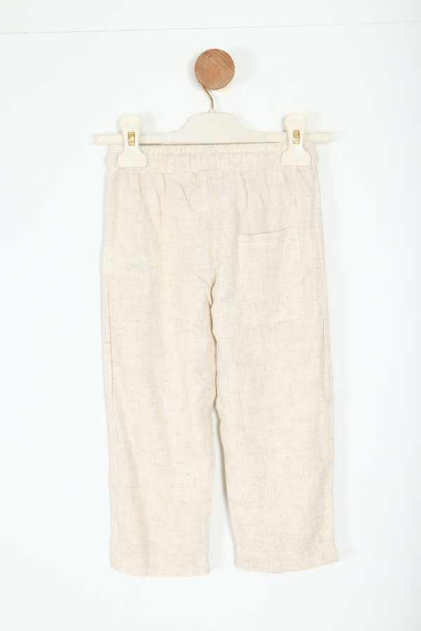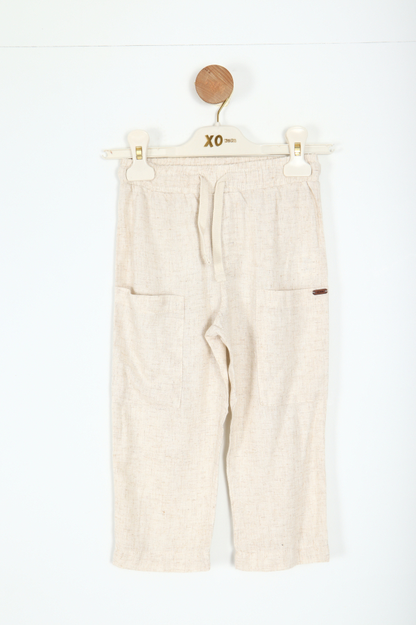 Bu şık ve rahat erkek çocuk pantolonu, günlük aktiviteler için mükemmel bir seçimdir. Krem rengiyle hem şık hem de kolay kombinlenebilir. Bel kısmındaki lastik ve kordon detayları, rahat bir oturuş sağlar.