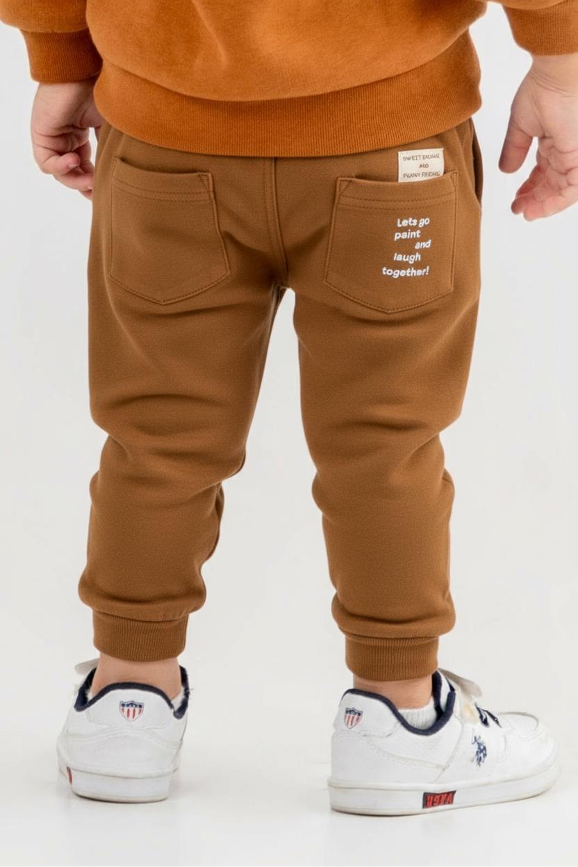 هذه البنطال للأطفال مثالية لموسم الشتاء بتصميم مريح ودافئ. تأتي بلون زيتي هادئ مع قصة جوجر مستقيمة، وتتميز بأساور مطاطية تسمح بحرية الحركة. لا تحتوي على سحابات أو أزرار، ولكنها مزودة بخصر مطاطي لسهولة الارتداء. تحتوي على جيوب خلفية مزدوجة، إحداها عليها عبارة مطبوعة ممتعة: "دعنا نرسم ونضحك معًا!" تضيف هذه التفاصيل لمسة مرحة وودية للبنطال. خيار مثالي للآباء الذين يبحثون عن ملابس رياضية وعادية يومية لأطفالهم.