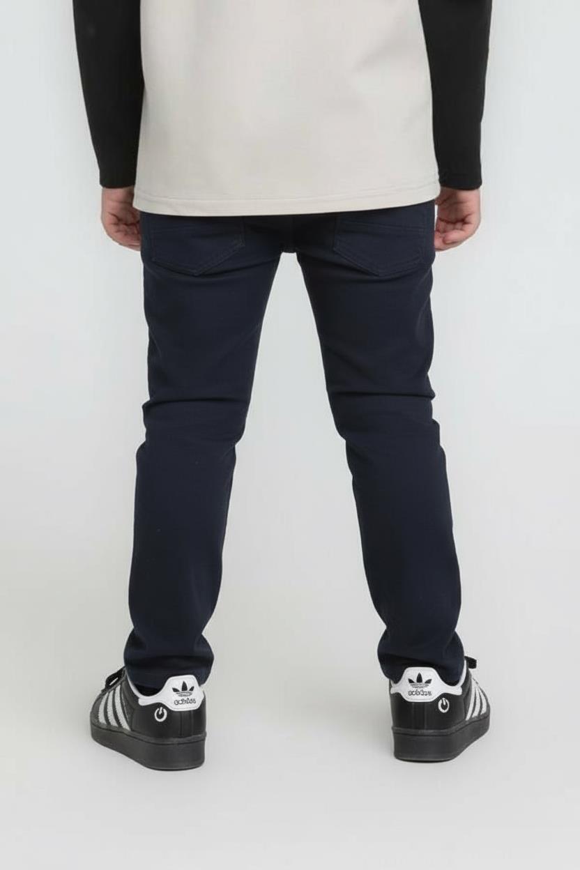 Erkek çocuklar için tasarlanmış bu lacivert pantolon, kış sezonuna uygun sıcak ve rahat bir giyim seçeneği sunar. Düz ve sade tasarımı ile günlük kullanıma uygundur. Pantolon, klasik kesime sahip olup, cepli ve fermuarsızdır. Rahat hareket kabiliyeti sağlayan uzun paça ve elastik kumaşı ile çocukların aktivite dolu günlerine eşlik eder.
