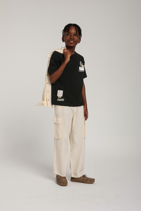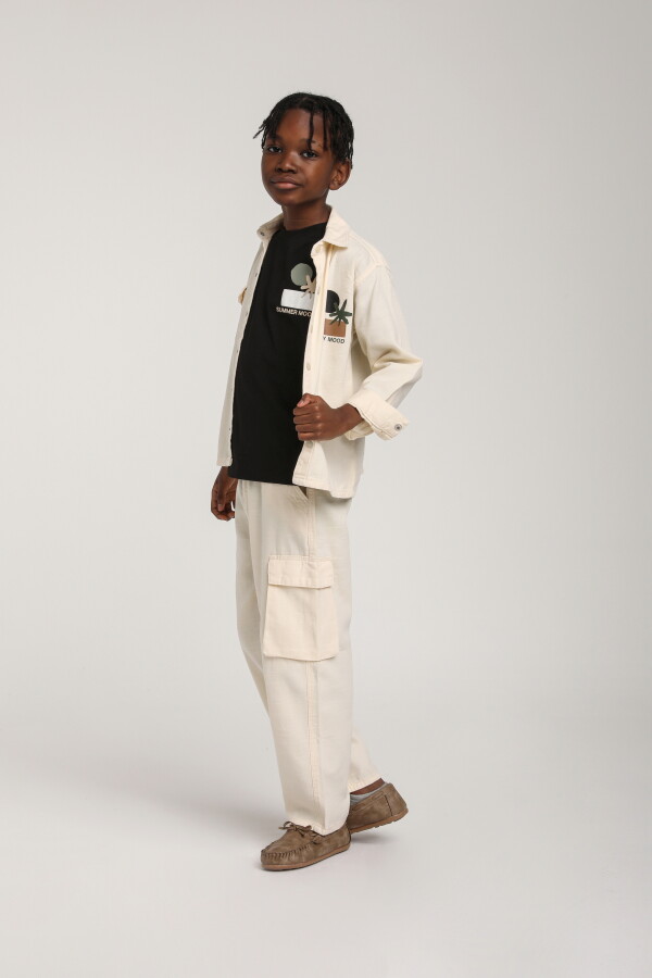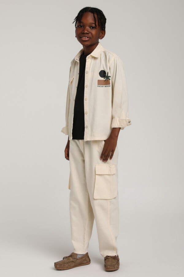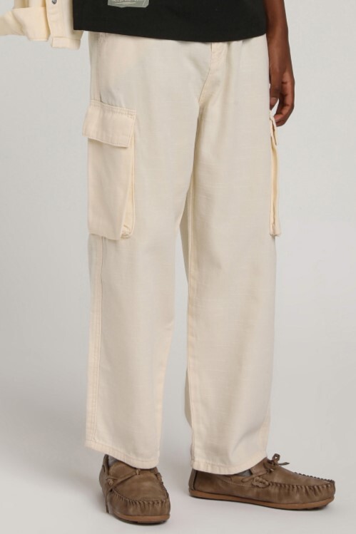 تم تصميم هذه السروال الأنيق للأطفال الذكور مع مراعاة الراحة والوظائف. لونه الكريمي الفاتح يوفر مظهرًا منعشًا لأشهر الصيف. مع وجود جيبين جانبيين واسعَين، فهو مثالي لتخزين مستلزمات الأطفال بأمان.