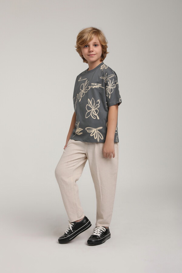 Çocuklar için tasarlanmış bu şık pantolon, hem rahat hem de şık bir görünüm sunar. Yumuşak dokusu sayesinde gün boyu konfor sağlar. Doğal renkteki bu pantolon, aynı zamanda farklı kombinlere kolaylıkla uyum sağlar.