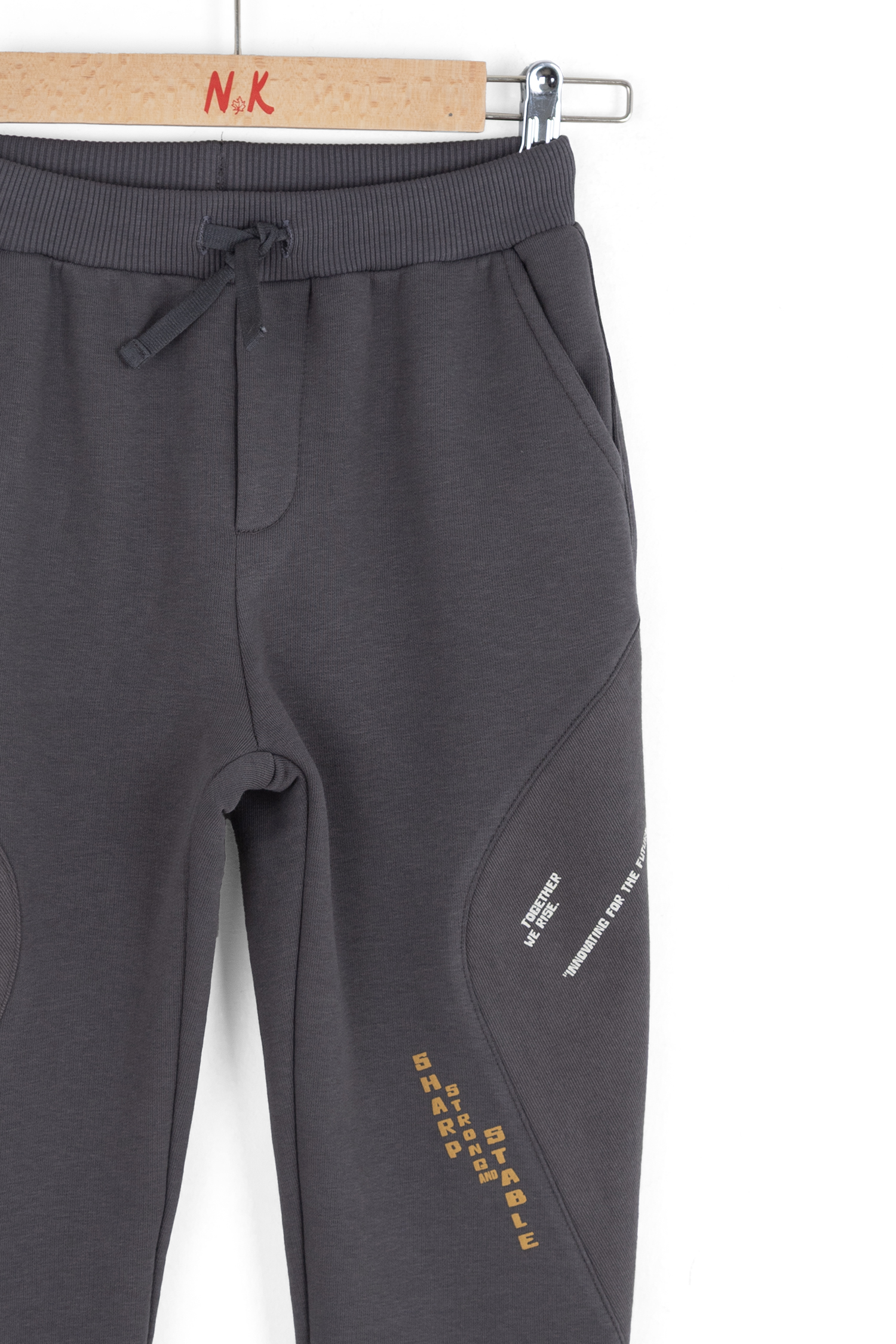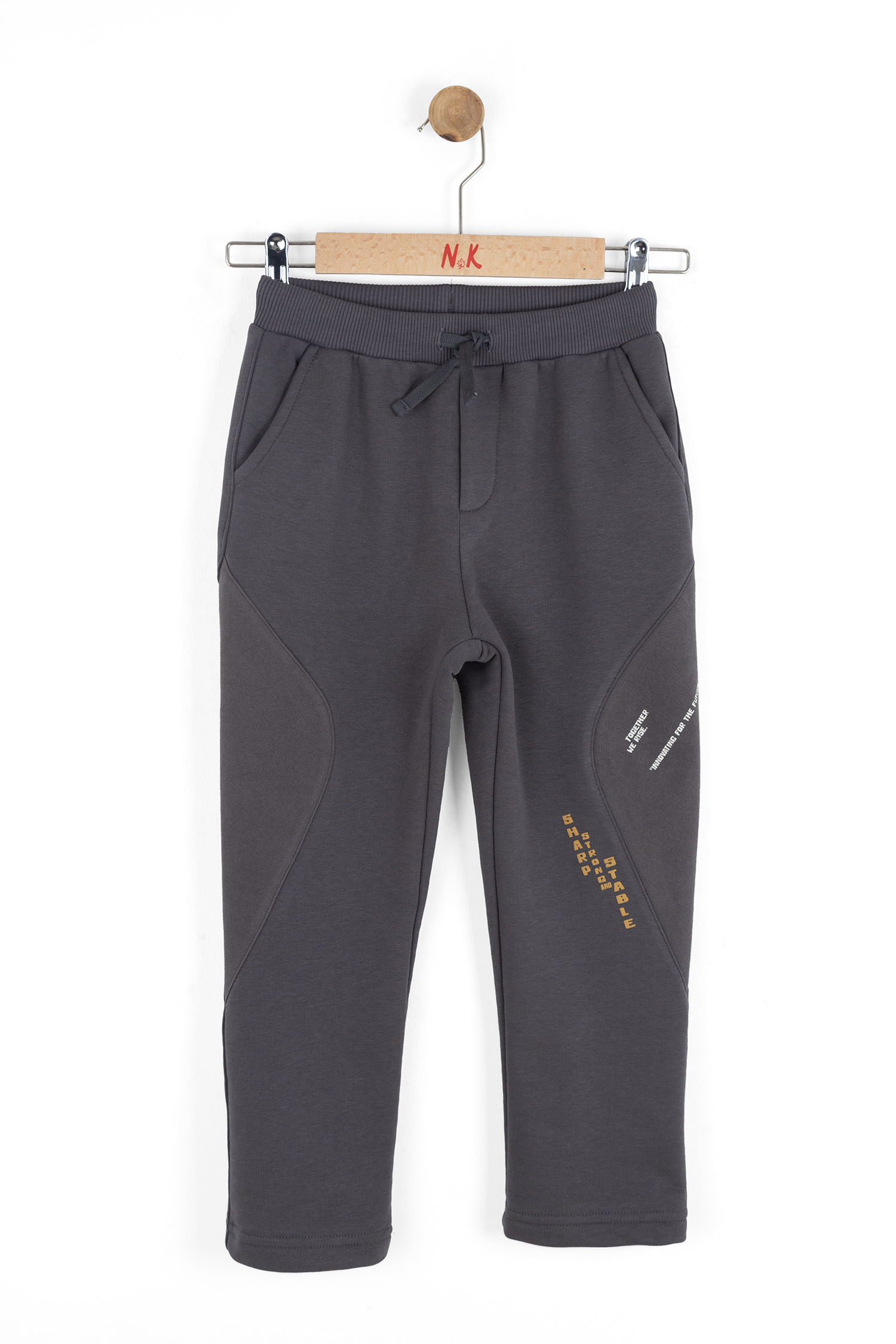 Erkek çocuklar için tasarlanmış bu rahat pantolon, antrasit renk seçeneğiyle günlük kullanıma uygundur. Bel kısmında elastik ve kordon detayı sayesinde ayarlanabilir, konforlu bir kullanım sağlar. Ön ve arka cep detaylarıyla pratiklik sunarken, diz bölgesindeki farklı dokulu kumaş parçaları pantolona sportif bir hava katmaktadır. Sağ bacakta bulunan yazı baskıları, modele modern ve enerjik bir görünüm kazandırır. Pamuk karışımlı yumuşak kumaşı sayesinde çocukların hareket özgürlüğünü kısıtlamadan, gün boyu rahatlık sunar.