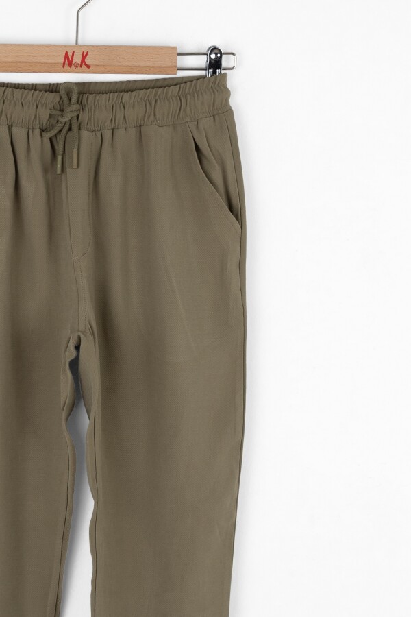 Haki renginde, rahat bir erkek çocuk pantolonu ile çocuklarınızın şıklığını ve konforunu bir arada sunun. Belli bir kalıba sahip olan bu pantolon, günlük aktivitelerde mükemmel bir seçimdir.