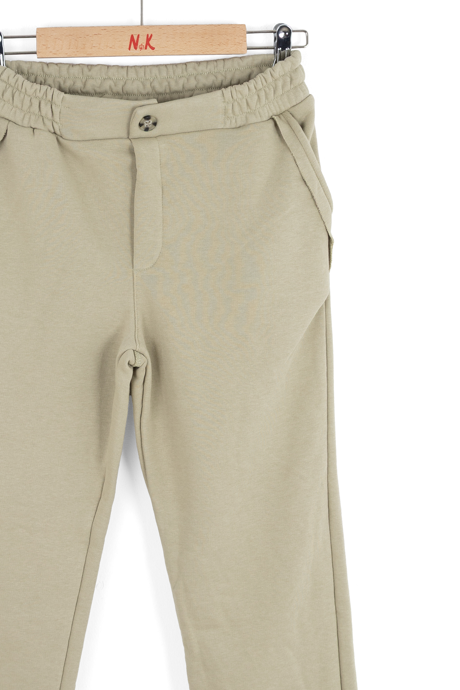 هذه البنطال للأطفال مزودة بتصميم مريح وأنيق. مصنوع من قماش ناعم ومرن يوفر راحة طوال اليوم. يحتوي الخصر على حزام مطاطي مع إغلاق بزر لتسهيل اللبس والخلع. يوجد جيبان جانبيان في الأمام وجيب واحد في الخلف. قصته مستقيمة وحوافه مناسبة للاستخدام اليومي. اللون الأخضر الفاتح والتصميم البسيط يمنحان مظهراً نظيفًا وعصريًا.