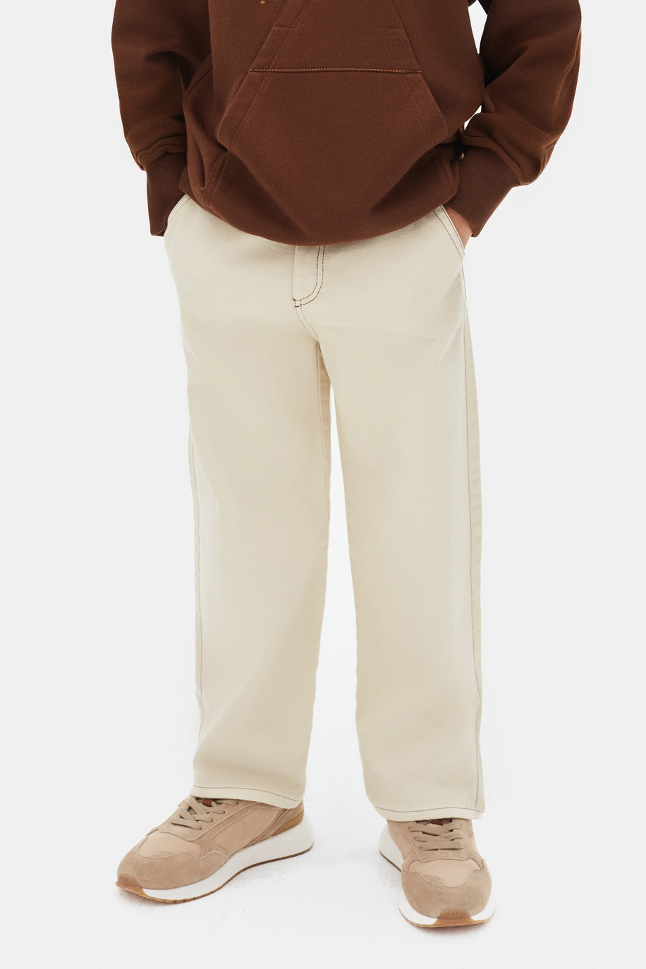 هذه البنطال للأطفال مثالية للاستخدام اليومي بفضل قصتها المريحة وتصميمها البسيط. البنطال باللون البيج يتميز بأسلوب كلاسيكي ومستقيم. لا يحتوي على سحابات أو أزرار، ولا يوجد حزام خصر مطاطي أو مزود بحبل. الجيوب الجانبية تسمح بحمل الأغراض الصغيرة بسهولة. طول البنطال طويل وقصته مستقيمة، مما يجعله مناسبًا لأيام الشتاء الباردة. خيار مريح للأطفال الذين يفضلون المظهر الرياضي والكاجوال.
