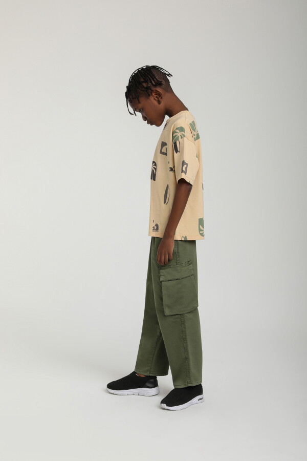 Erkek çocuklar için tasarlanmış bu pantolon, şıklığı ve konforu bir araya getiriyor. Haki renk seçeneği ile doğayla uyumlu bir görünüm sunan bu pantolon, rahat kesimi sayesinde her türlü aktivite için idealdir. Cepli yapısı, çocukların ihtiyaç duyduğu taşımak için alan sağlarken, pamuklu kumaşı da nefes alabilirlik sunar.
