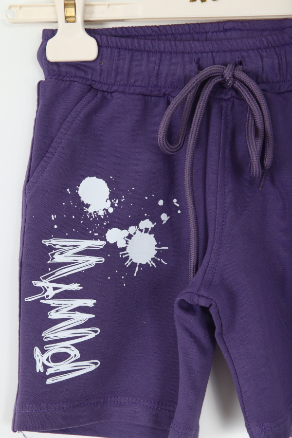 Erkek çocuklar için tasarlanmış bu mor şort, rahat ve şık bir yaz gardırobunun vazgeçilmezi olacak. Elastik bel kısmı ve kordonlu yapısı sayesinde kolayca ayarlanabilir, hareket özgürlüğü sağlar. Şortun ön kısmında yer alan beyaz baskılı desenler ona sportif ve enerjik bir hava katarken, yan cepler pratik kullanım sunar. Orta uzunlukta ve pamuklu kumaştan üretilmiş olması, sıcak havalarda serin ve konforlu kalmasını sağlar.